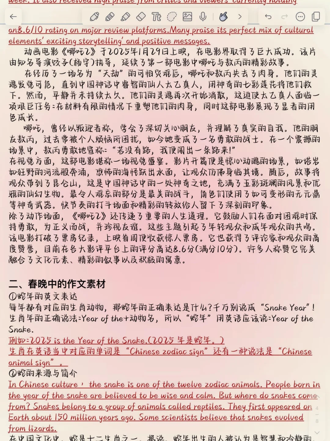 英语 英语学习 英语写作 作文模板 作文范文 英语作文 作文素材 哪吒之魔童闹海