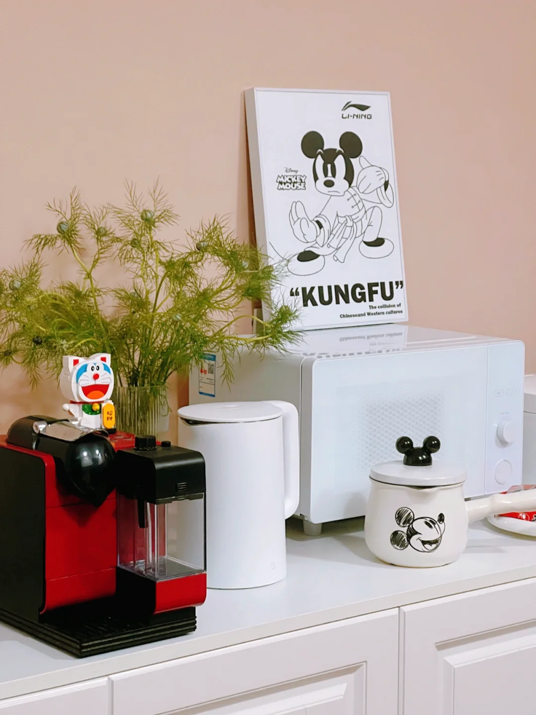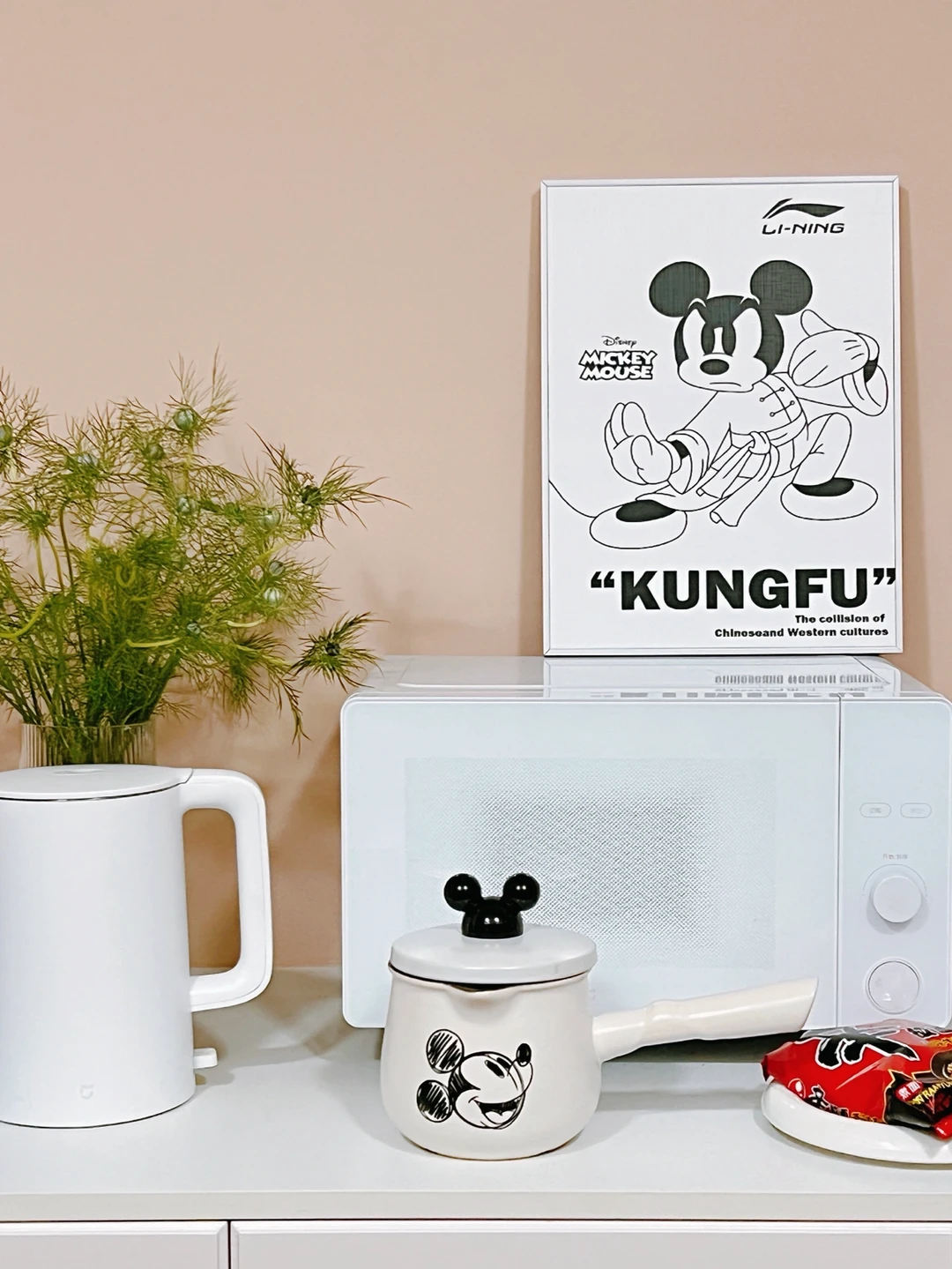 新入的奶锅,米奇造型也太萌了。 准备用它来煮辛拉面。 年前整理了厨房一角,一水的白色小米系列[派对R]