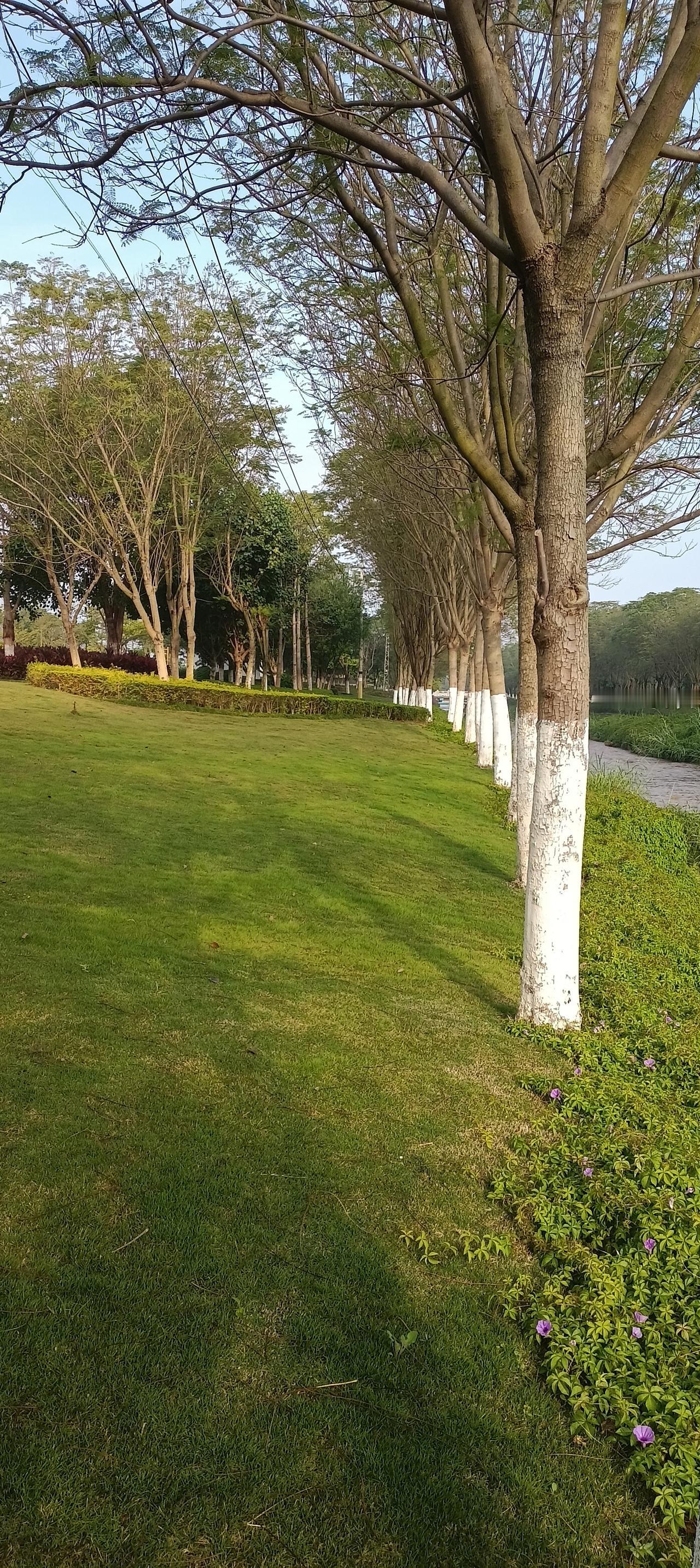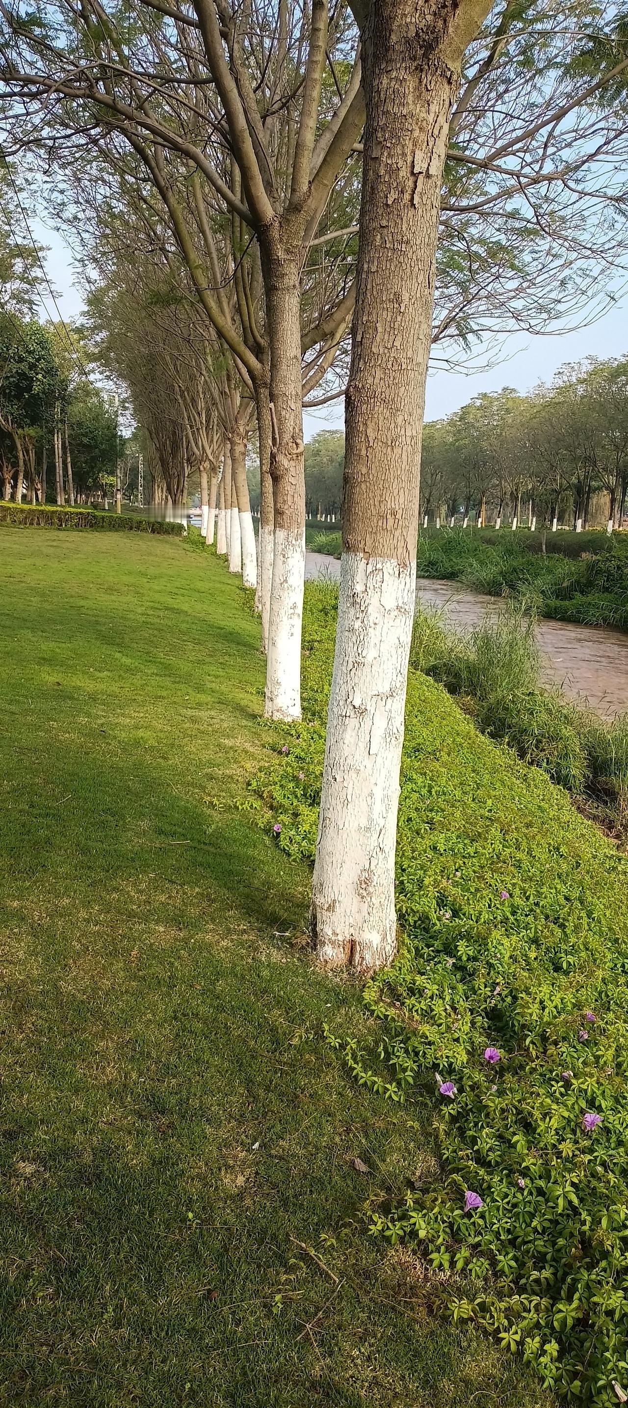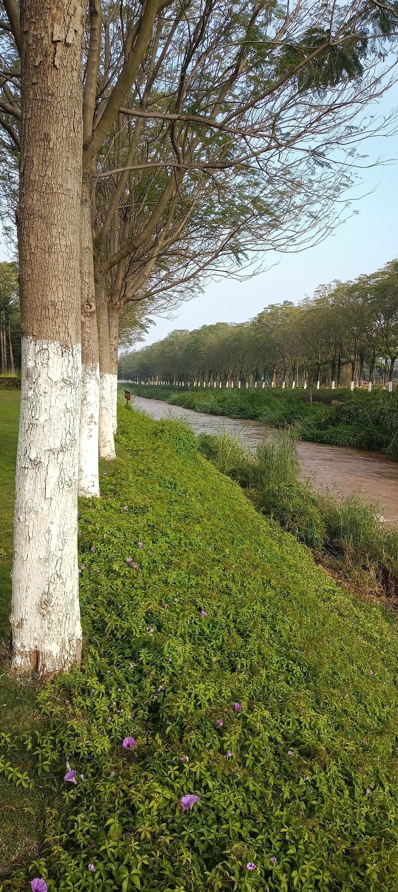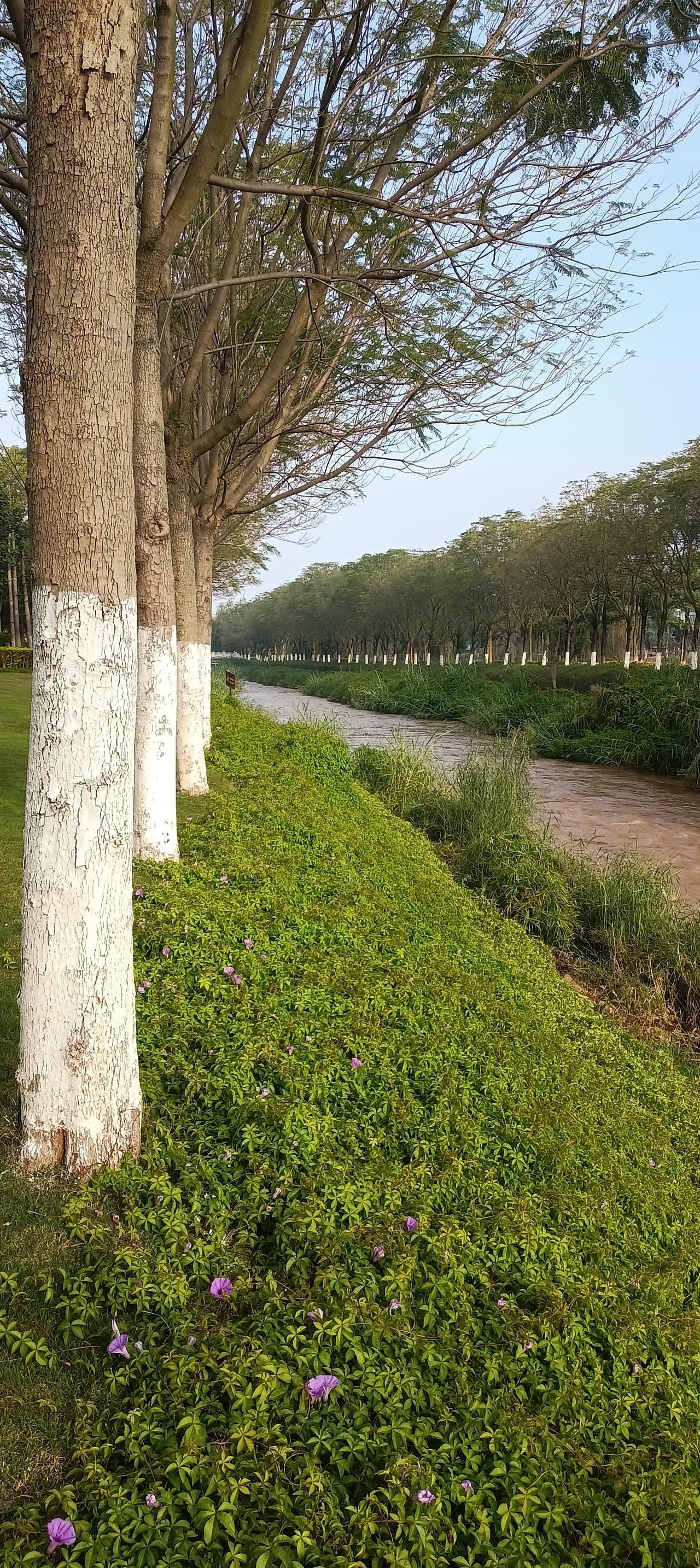沿着树列走白漆裹着树干,像给树穿了半截干净的围裙。风从河那边漫过来把树影揉碎在草叶上。河水流得轻把天的淡蓝浸成了软缎。 远处的树连成线,把路往更安静的地方引。我蹲下来指尖碰着一片带露的紫,凉丝丝的,像接住了这傍晚的半缕温柔。河水流得轻,把天的淡蓝浸成了软缎。远处的树连成线,把路往更安静的地方引。 我蹲下来。指尖碰着一片带露的紫,凉丝丝的,像接住了这傍晚的半缕温柔。而那只小鸟早落在了对岸的枝桠上,把尾巴一翘又把一串鸣啼抛进了风里。原来不用追着风景跑,一丛藤、几朵花、一声鸟叫,就把日子织成了软乎乎的诗。