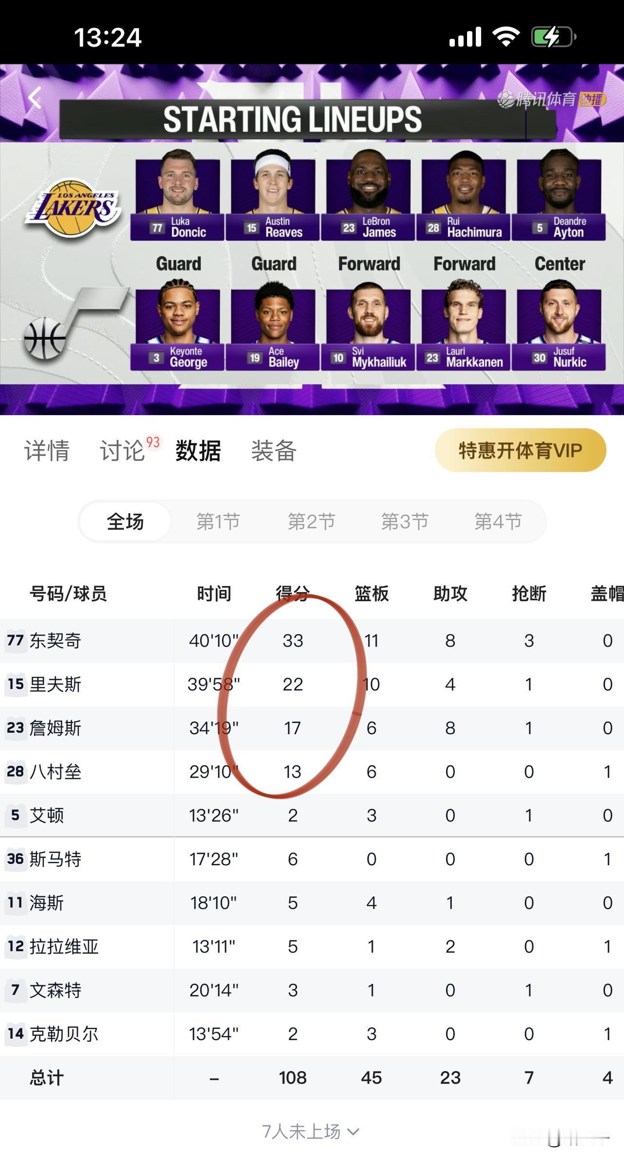 湖人险之又险击败爵士取得四连胜! 爵士尾盘马尔卡宁发力, 差点夺走湖人到手的胜利。 好在幸运眷顾了湖人! 詹姆斯的效应又来了: 就是球员对他过度依赖。 最后詹姆斯、里夫斯、东契奇三巨头出手都不中,角色球员艾顿、拉拉维亚今天不怎么得分了。 这就是詹姆斯得分后要球队要失去的东西, 而且今天“湖三崩”又有回来的趋势! 这是湖人教练团队不得不思考和权衡的问题。 防守和篮板更加不堪了, 打爵士尚且如此吃力, 那面对强队该当如何。 让詹姆斯打替补做最佳第六人吧! …