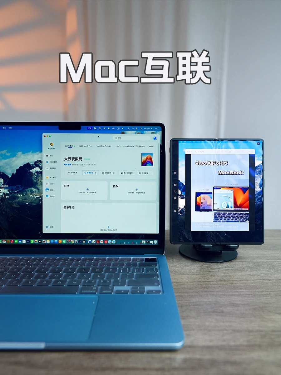 苹果搭子千千万,vivo X Fold5折叠屏才是超越的那一个,从手机,手表,Mac,耳机等,全链路打通和苹果的生态。