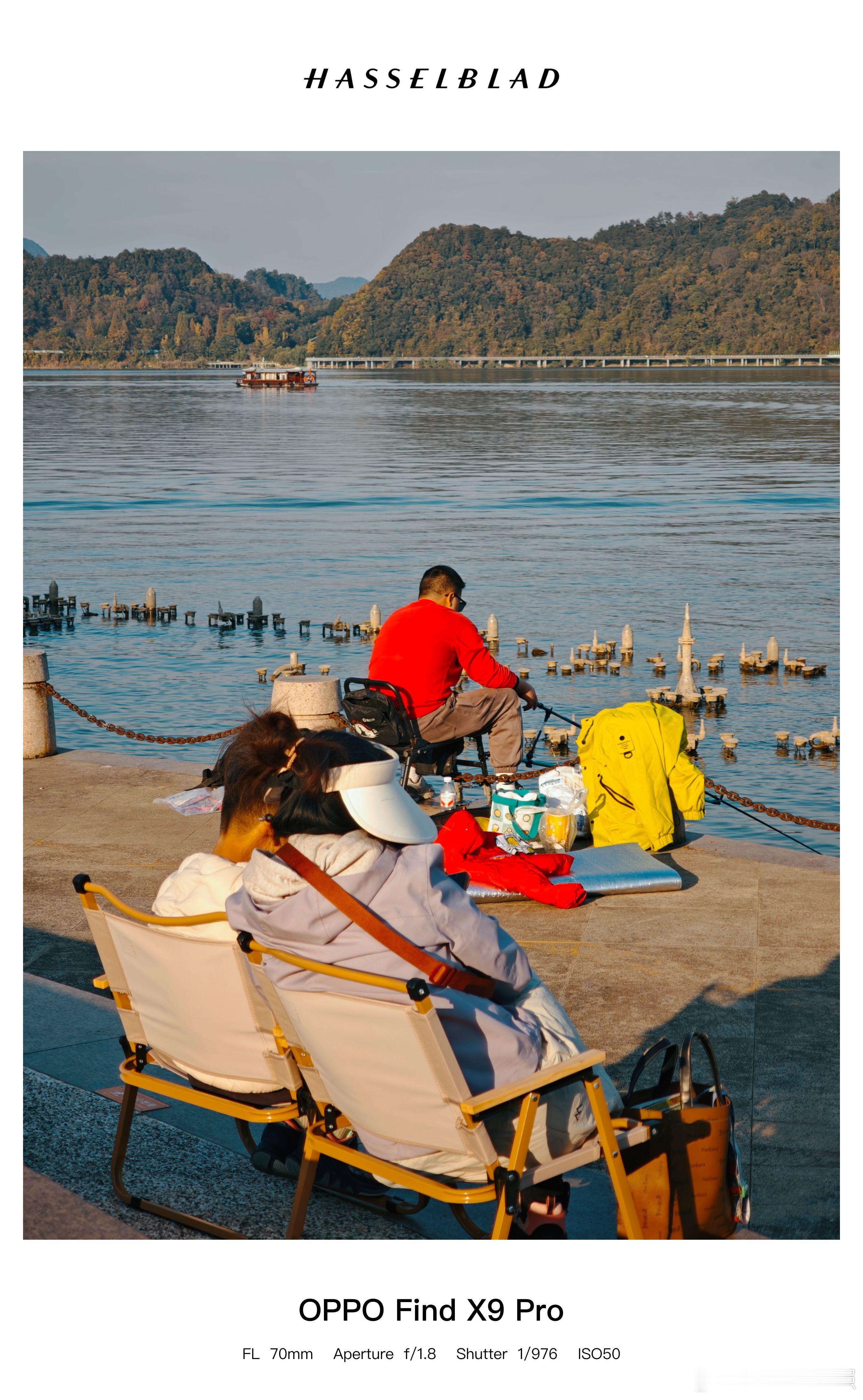 早起瞎逛的收获 湖边晨雾还没散干净,随手拍的水纹裹着日出的光(这橘子色是真透亮);偶遇小鹿啃草,嚼得比我吃早餐还香;还有路人支摊等风来——没什么特别的,就是普通日子里刚好撞见的舒服。 📷:OPPO Find X9 Pro