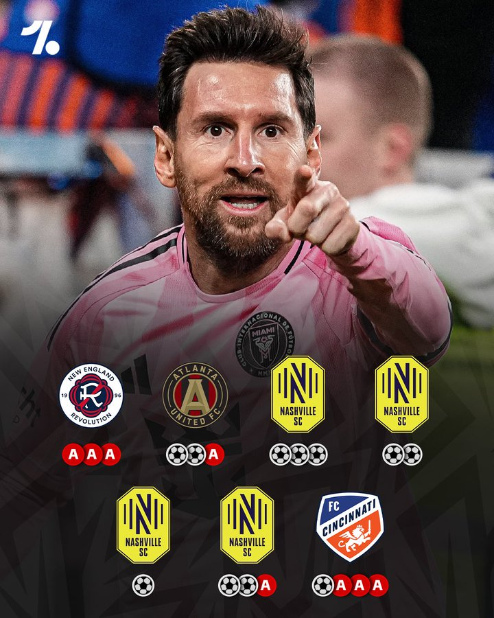 如果迈阿密国际队进球,几乎可以肯定梅西参与其中😵🔥在他们打进的 25 个进球中,有 19 个是由来自罗萨里奥的男孩打进或助攻的😮💨38岁了,依然宝刀未老🤩