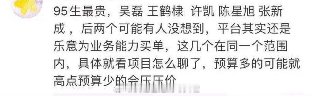 陈星旭、李一桐《金枝》,瓜主爆料陈星旭平番在前,按姓氏首字母排序,这是他目前谈项目的条件。编剧认证金枝主打古装大女主搞事业,所以李一桐团队准备让渡番位保戏份吗?李一桐一番古偶有书卷一梦,陈星旭有东宫和星落凝成糖,影视寒冬下,两人强强联合才能顺利开机吧。。。