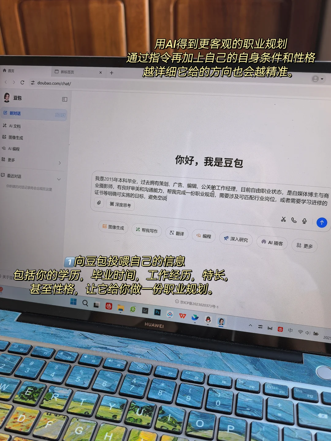 1⃣向豆包投喂自己的信息,包括你的学历,毕业时间,工作经历,特长,甚至性格,让它给你做一份职业规划。