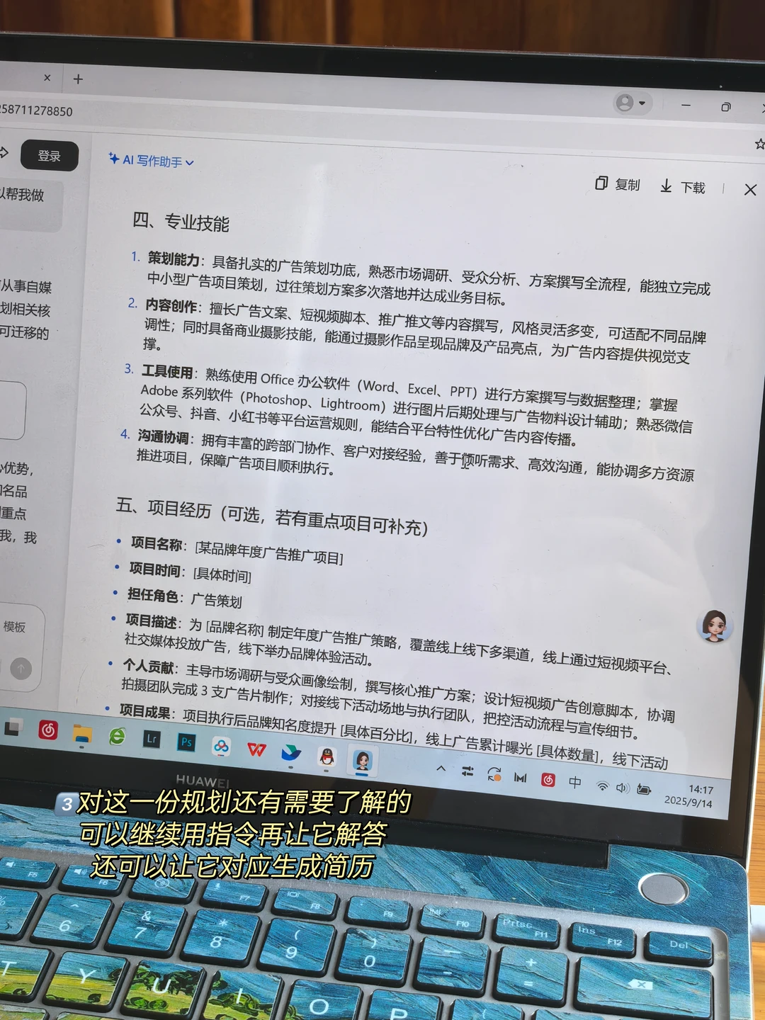 3⃣对这一份规划还有需要了解的可以继续用指令再让它解答,例如再让它根据已有信息整理一份简历👌