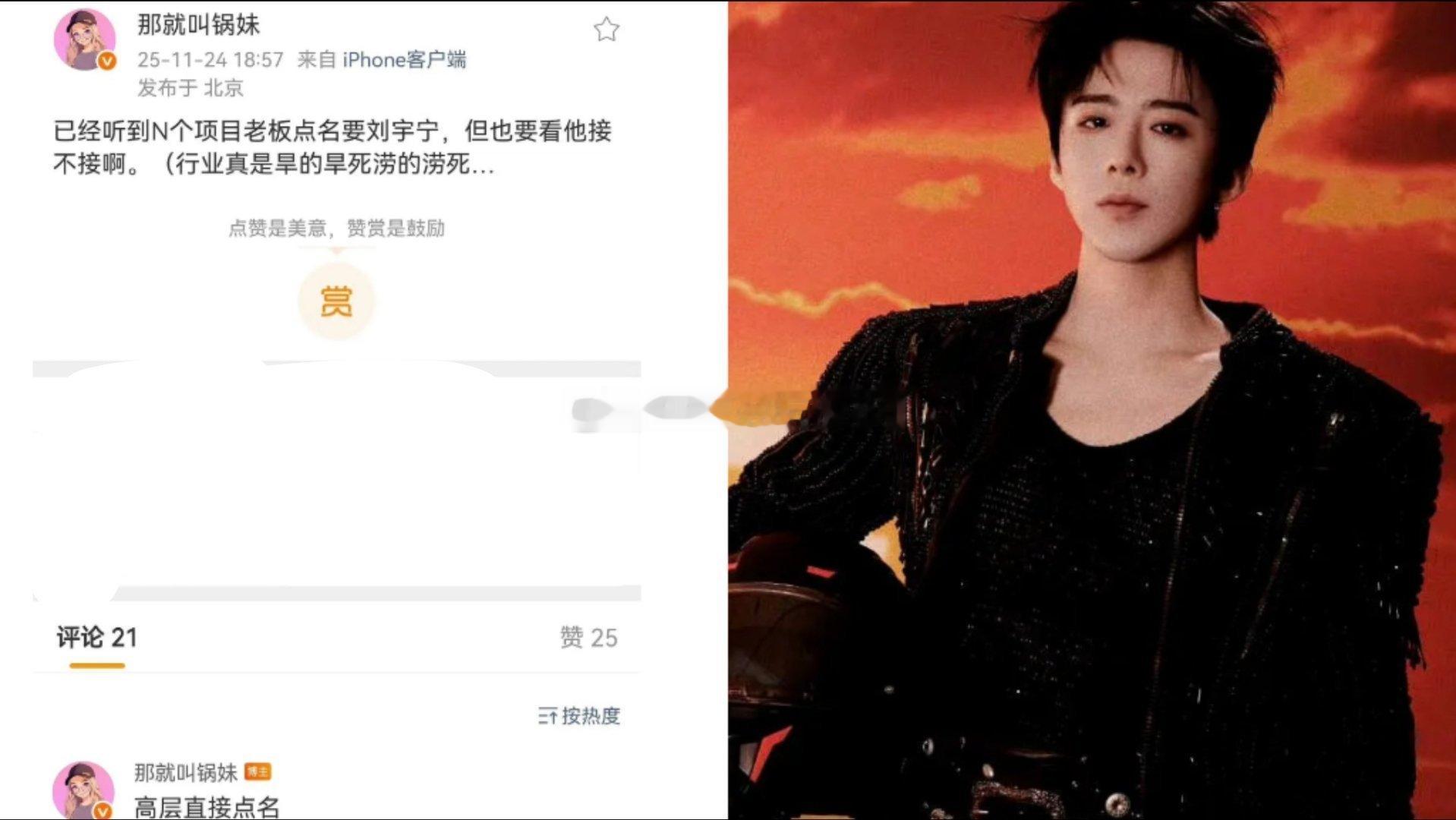 有瓜主说:有n个项目老板点名要刘宇宁,而且还是高层直接点名的,但是要看刘宇宁接不接。