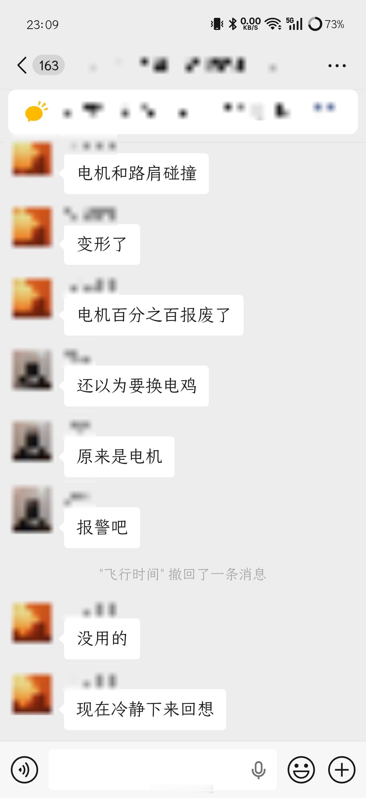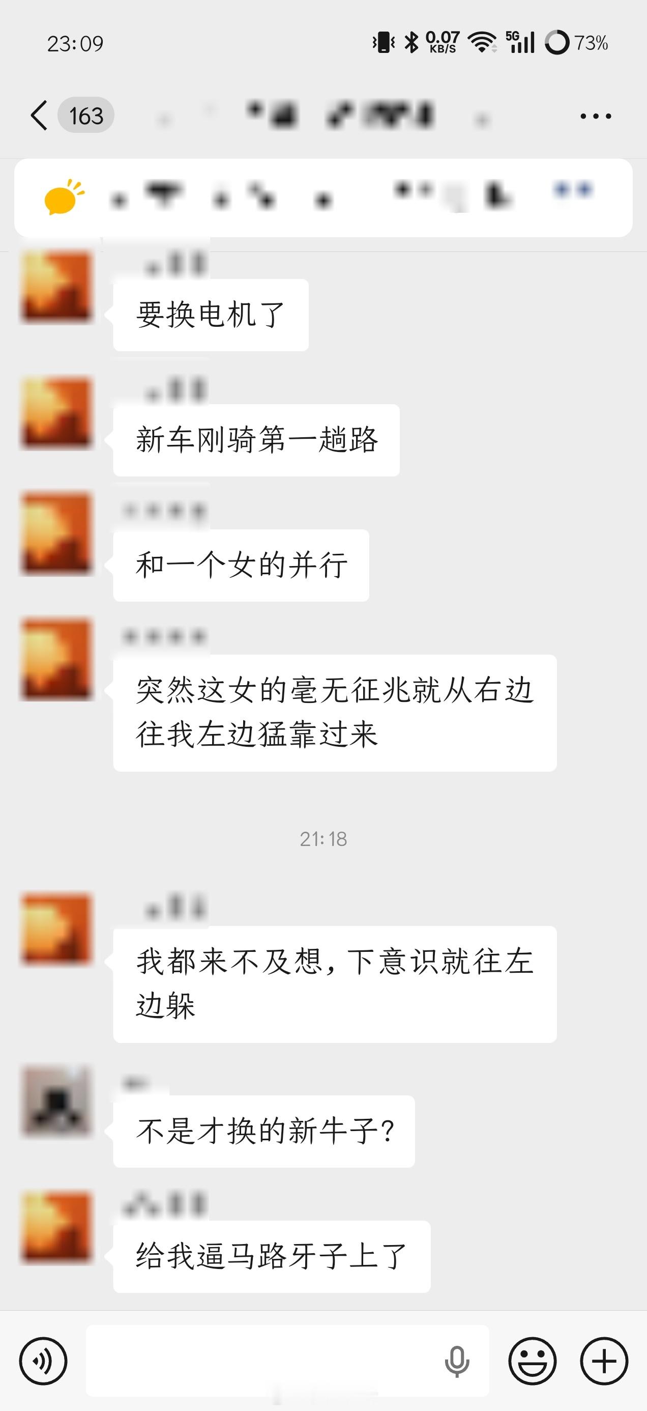 群友新电动车刚上路,结果遭遇不讲武德的蒙脸女骑手,从右边闪移贴近,群友本能闪躲,结果电机磕到马路牙子上,报废了。那个女骑手,连句sorry都没,一溜烟跑了……我看了下售后报价单,一个电机就得1450元了,你们说倒霉不倒霉PS:他今天没开车,想骑新买的电动车尝尝鲜,结果就遭遇了恐怖一幕,估计以后看到女司机都要PTSD了