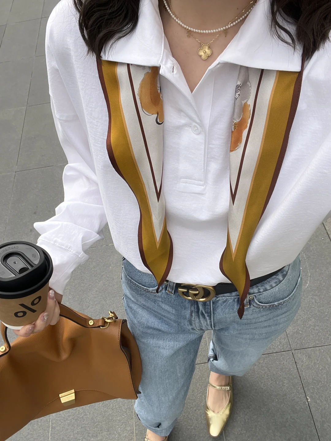 基础款小心机穿搭:爱了很多年的油画小丝巾✔️🐣 距离放假倒计时一天啦!辛勤牛马表示太兴奋啦😂