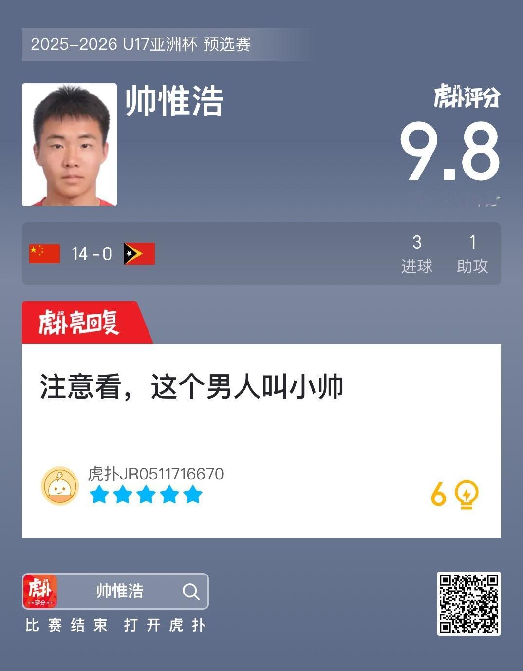 U17亚预赛:中国14-0东帝汶,国少七人破门三人戴帽!虎扑11月24日讯北京
