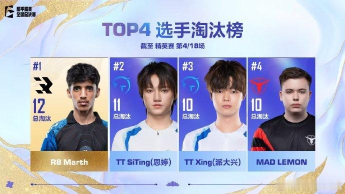 淘汰榜这边也有出色表现,队员们的个人能力超在线,每一次淘汰都干净利落,为队伍拿下好成绩奠定了坚实基础!