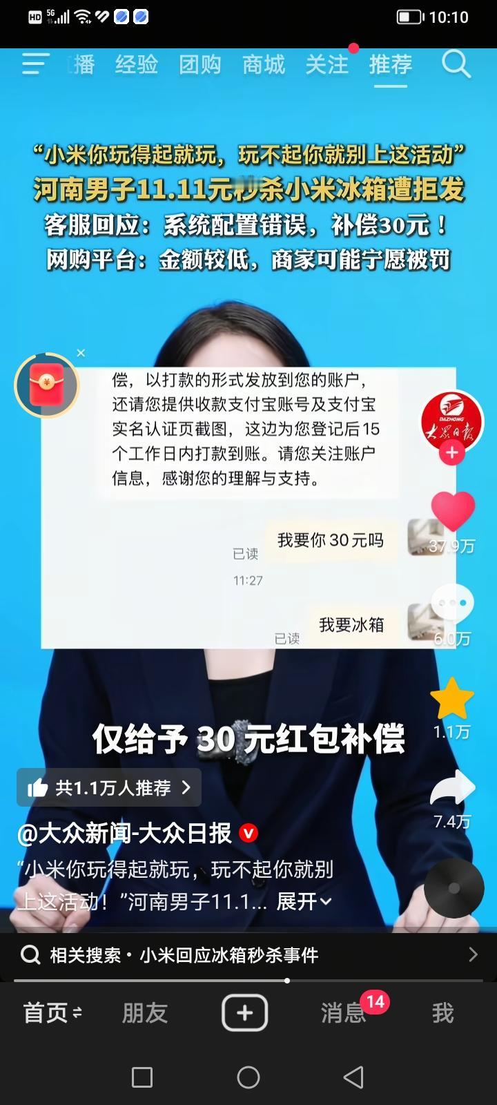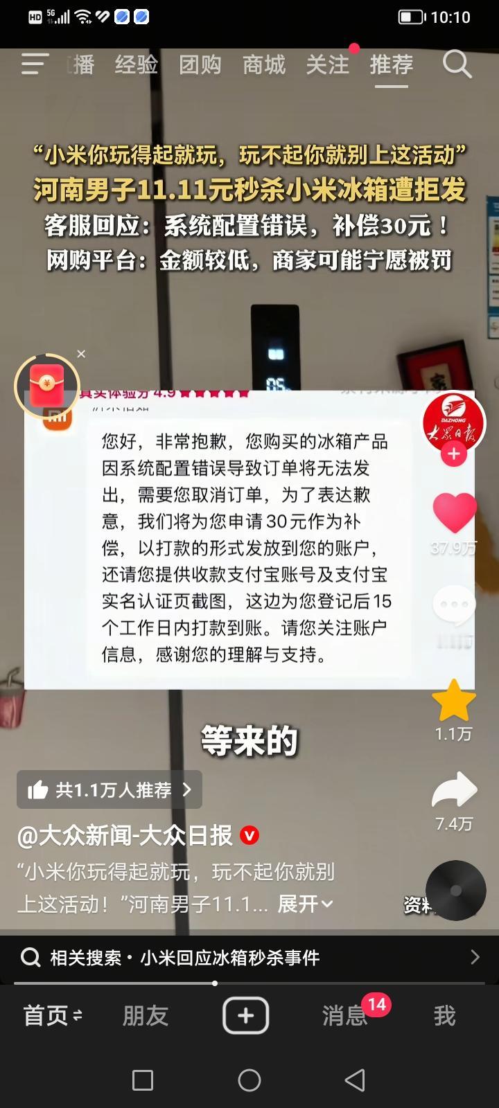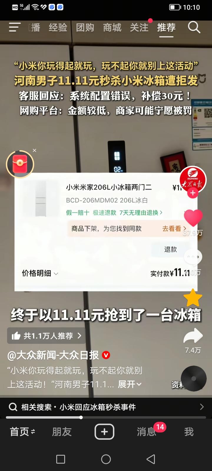近期,一男子发文“小米你玩得起就玩,玩不起就别上这活动”,最后小米用行动告诉你,我就玩不起,不玩了。一起关于“双十一”期间以超低价秒杀小米冰箱却遭拒发的事件引发了广泛关注。 河南安阳的张先生在“双十一”期间,通过电商平台成功秒杀到一台标价 11.11元 的小米三开门冰箱。为了抢购,他甚至关闭了无线网络以确保订单成功。然而,在等待发货时,他收到了小米官方旗舰店的消息,称因“系统配置错误”导致订单无法发出,并建议取消订单,同时申请了 30元 红包作为补偿。 小米官方客服确认,该冰箱产品确实因“系统配置错误”导致订单无法发出,可能是库存配置异常。平台客服则表示,如果消费者能成功下单,商家就应正常履约。若拒不发货,平台可依据规则处罚商家。但考虑到订单金额极低,商家可能宁愿接受处罚,也不愿承担高额的发货成本。 根据《民法典》第四百九十一条,消费者成功下单付款即构成合同成立。商家以“系统错误”为由拒绝发货,属于违约行为。平台也应积极介入,督促商家履约,否则可能承担连带责任。 网上舆论分成两派,一部分支持消费者维权: 认为商家和平台做法不合理,商家发起活动就应守信,平台不应“和稀泥”。 还有一部分理解商家处境: 认为11.11元买冰箱远超正常促销范围,属于明显的标价失误,消费者也应体谅商家的损失。 为了解此类活动的普遍规则,我们参考了小米商城的官方说明,其中提到可能存在因系统缓存、页面更新导致价格变动异常的情况,并建议消费者在发现异常时立即联系客服。 这起事件的核心在于,消费者认为商家应履行合同,而商家则以“系统错误”为由拒绝履约。从法律角度看,商家的“系统错误”并非当然的免责金牌。该事件也引发了公众对电商“毁约式促销”行为的担忧,提醒消费者在参与此类活动时,需仔细阅读规则并保留证据,以便在权益受损时进行有效维权。 "低价秒杀是双刃剑,考验的不仅是商家的诚信,更是平台规则的底线。"(图片信息来源:大众新闻—大众日报) 小米冰箱爆炸 小米冰箱维修 二手小米冰箱 小米大容量冰箱 小米制冰冰箱 双11家电福利 小米零嵌冰箱