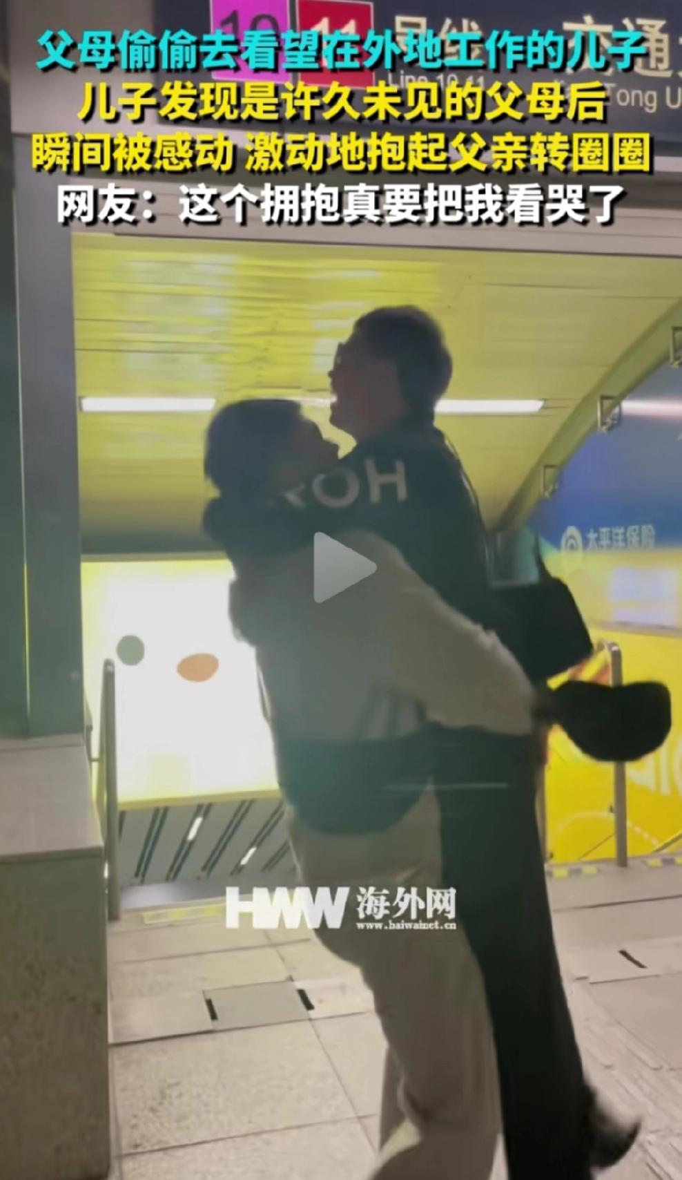 近日浙江,一父母偷偷跑去外地看望工作的儿子。当儿子一发现是许久未见的爸妈,直接激动得抱起他爹开始转圈圈!这画面真的太戳人了!父母的爱总是这么悄无声息又深沉,大老远跑去看孩子。儿子那满满的感动都快溢出屏幕了,亲情的力量太伟大了! 看到这一幕,我眼眶都湿了,感觉心里暖暖的。