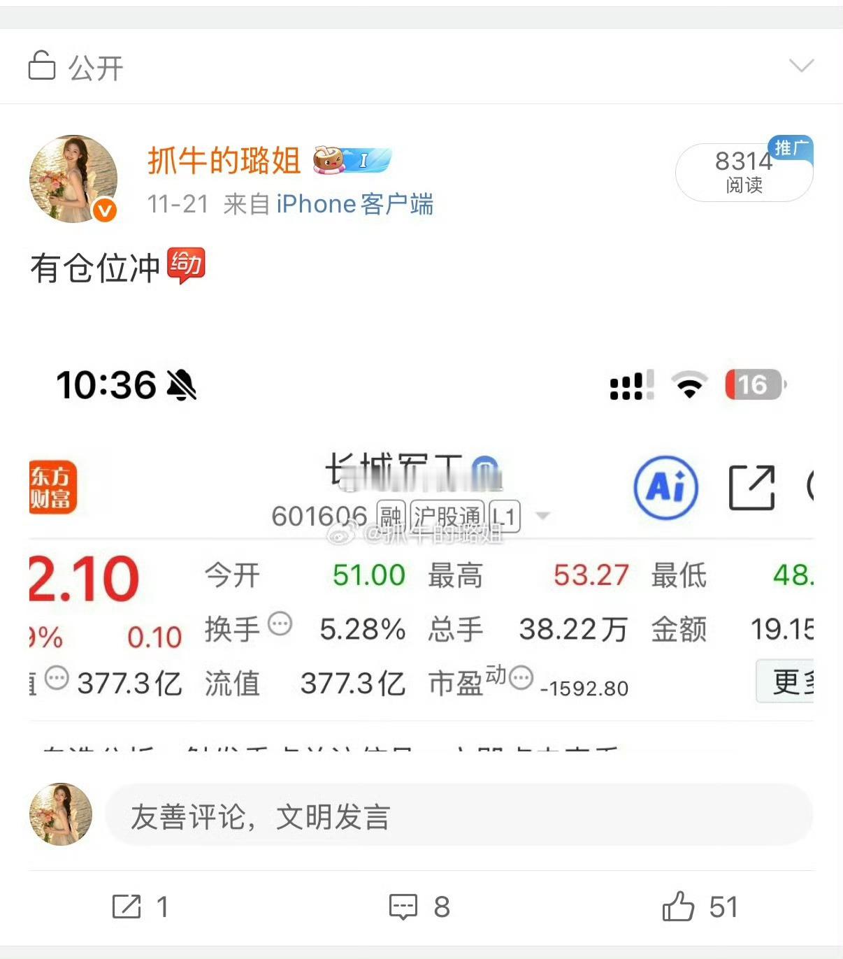 家人们!看了我微博的都知道$长城军工 sh601606$ 我上周五微博就公开分享