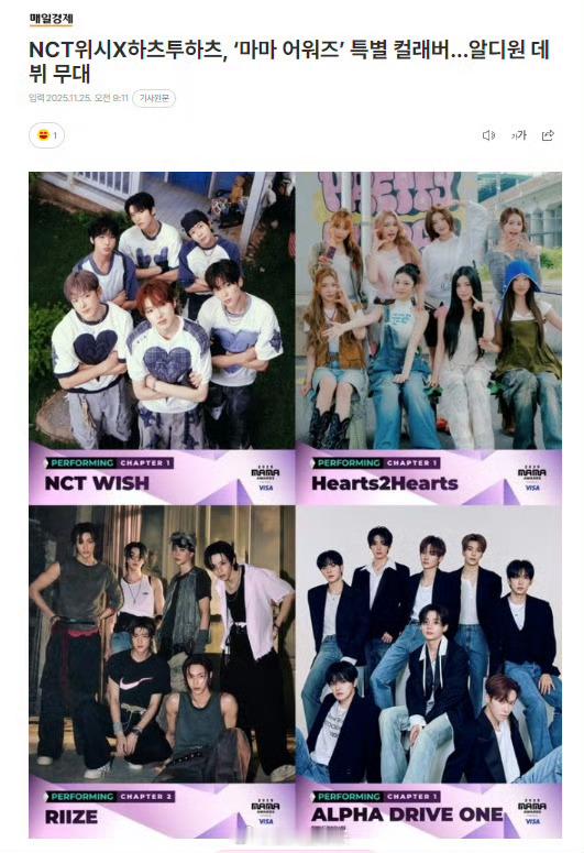 NCT WISH x Hearts2Heart将在《2025》MAMA有合作舞台!