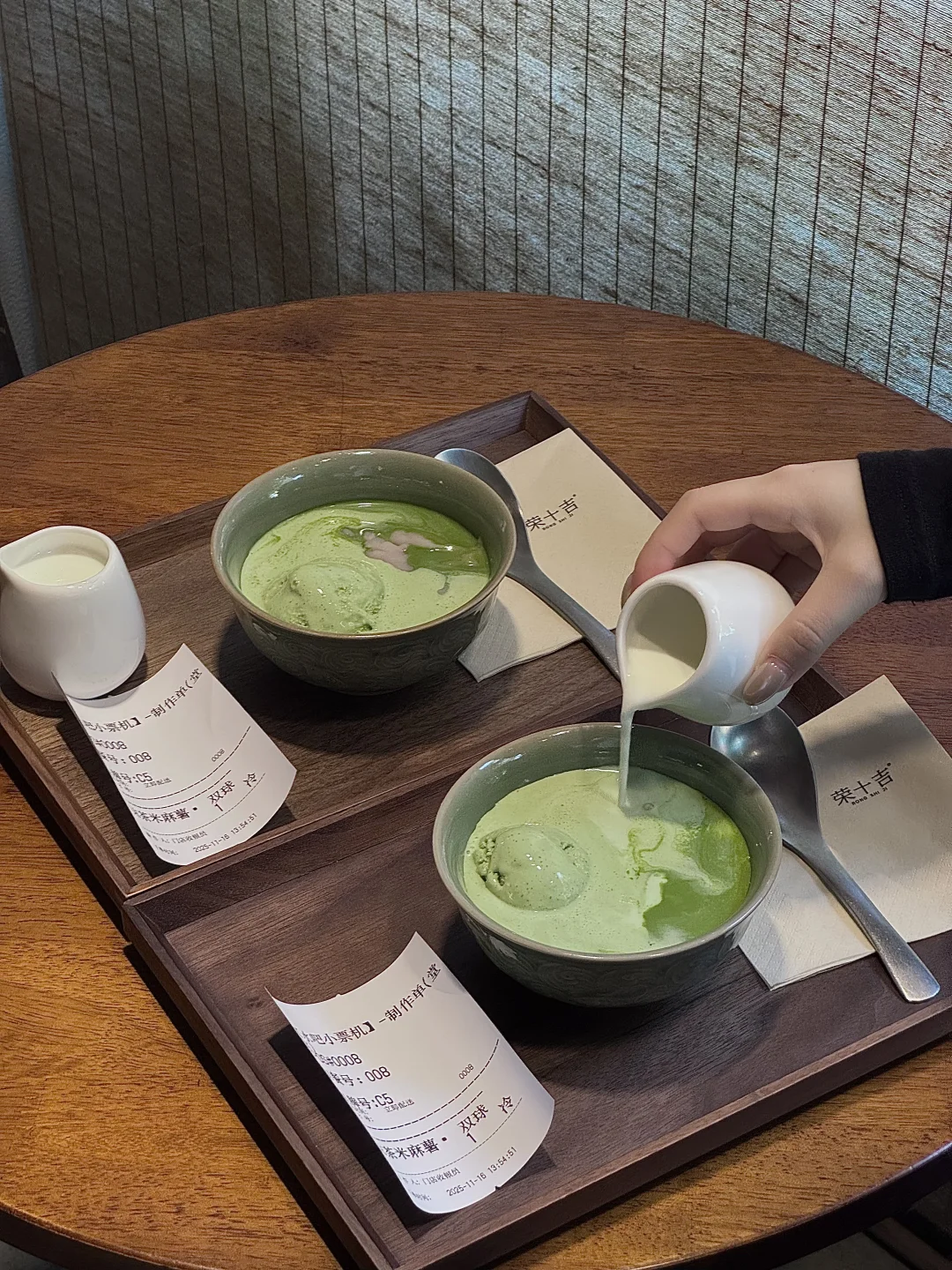 开在紫金城附近的新中式糖水铺 店内宽敞舒适 花艺布置得很好看 听说每周都会更换不同主题的花艺 糖水应时应季 且都是低糖的 适合和姐妹约会下午茶的地方 🍵抹茶雪糕+米麻薯+芋泥+娟姗牛乳 不是很苦的苦抹 麻薯软软糯糯米香奶香不甜不腻 份量在线 饱腹感强