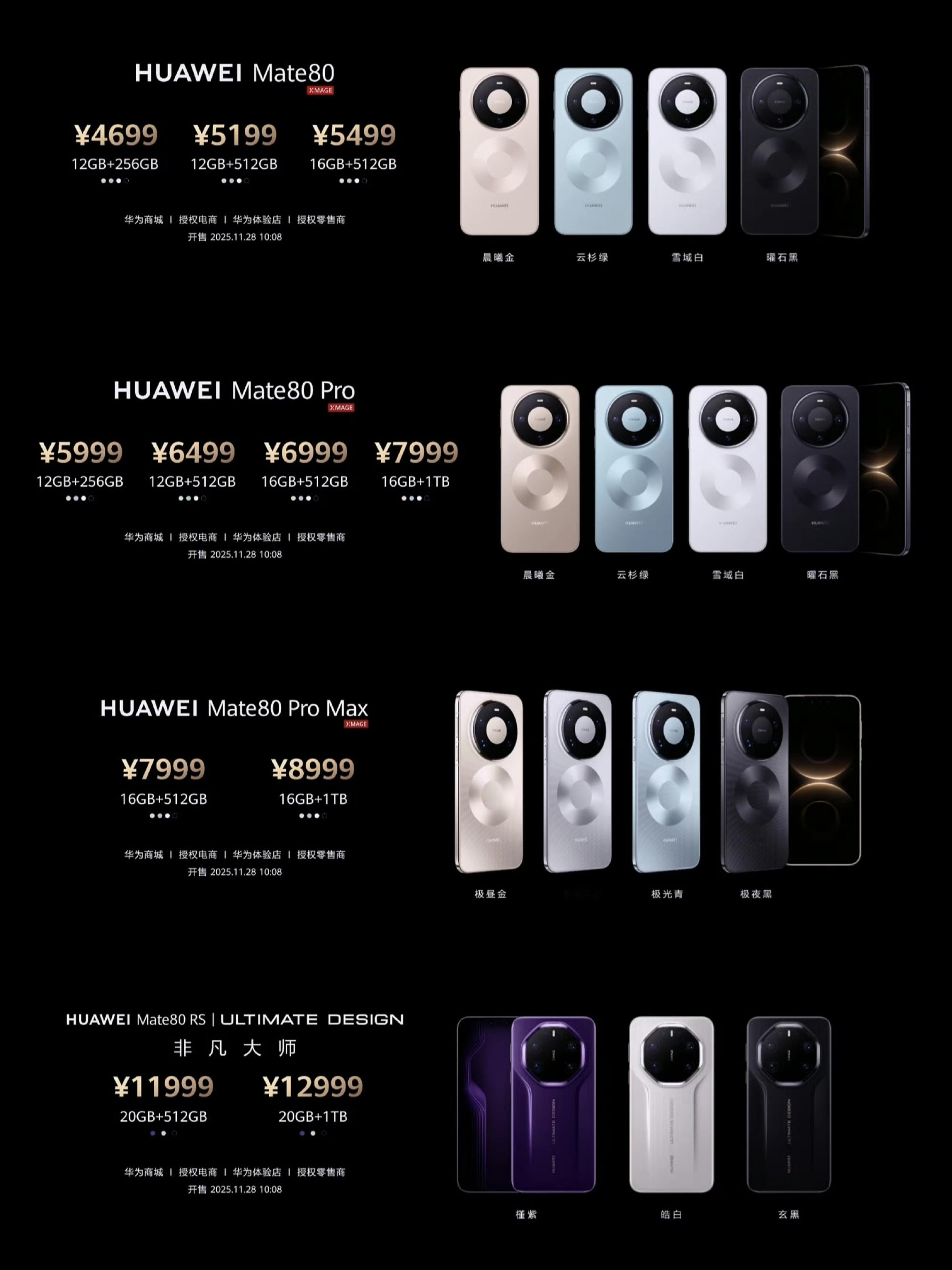 大家最关心的公布了!Mate80标准版12G+256GB版本4699元1