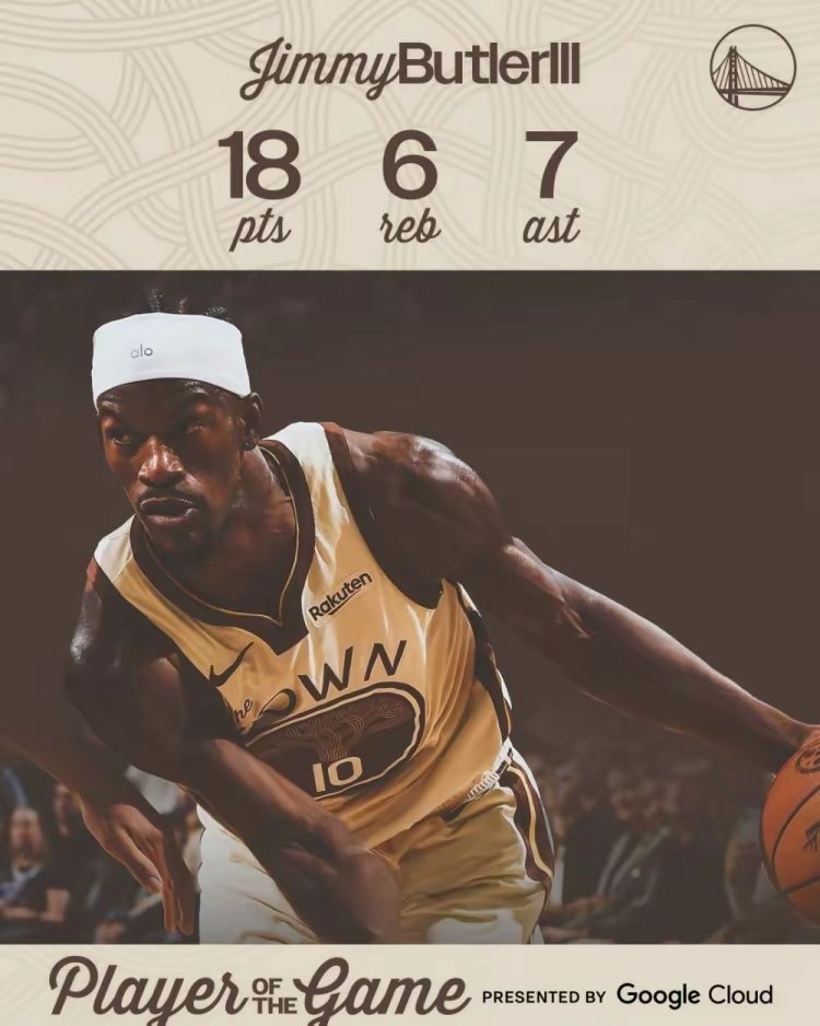能量遍布整个球场!砍下18+6+7的巴特勒被评为本场勇士最佳 11月25日讯 NBA常规赛,勇士134-117轻取爵士。此役勇士前锋巴特勒攻防两端高效全面,打了28分钟11投8中,罚球3中2拿到18分6篮板7助攻,正负值+19。赛后,勇士官方也把巴特勒评为了本场最佳,评语是:“10号的能量遍布整个球场。”