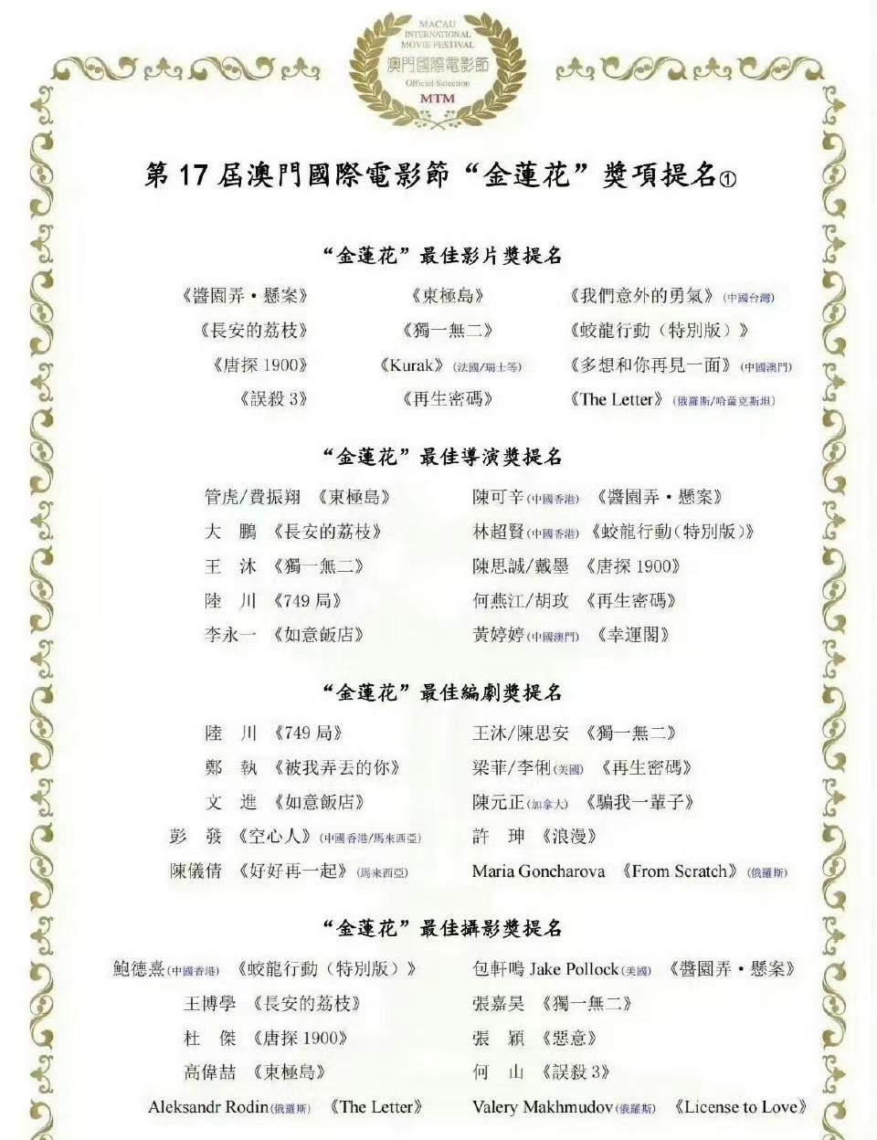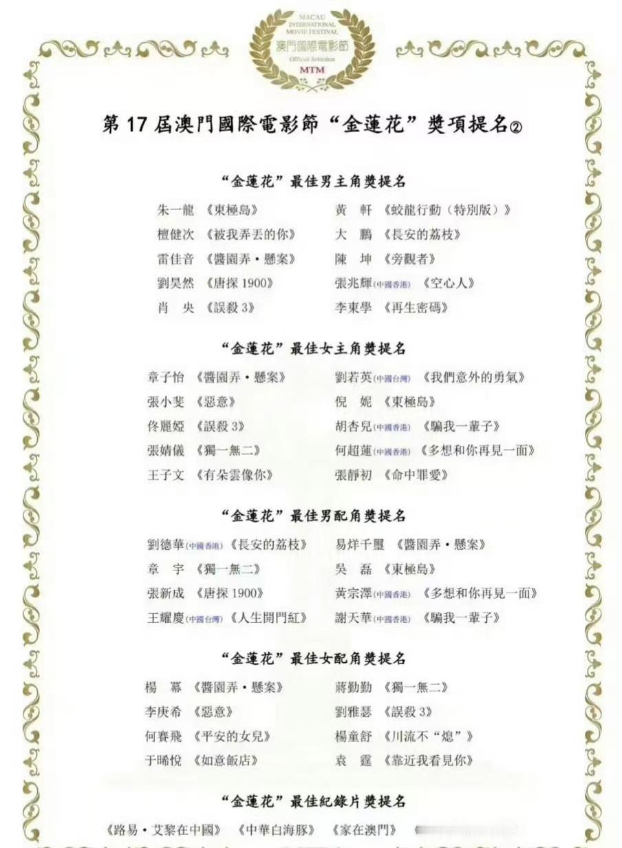 澳门电影节金莲花提名这么水,原因众所周知。金莲花奖本身影响力不大,就因为那年刘亦菲拿了视后,铺天盖地的宣传和营销就来了。 看看这次提名的名单:范丞丞《小巷人家》最佳男配角、陆川《749局》最佳导演、何超莲《多想再见你一面》最佳女主角、杨幂《酱园弄》最佳女配角,不知道的还以为是金扫帚奖的提名名单。