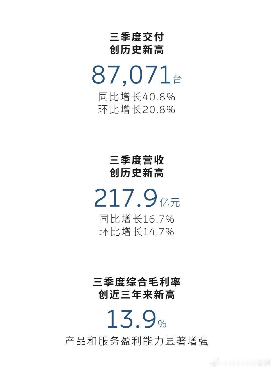 蔚来2025年Q3财报成绩亮眼。交付87071台、营收217.9亿元均创新高,14.7%的整车毛利率和13.9%的综合毛利率也达近三年峰值。虽然还是净亏34.8亿元,但同比减亏31.2%,还实现了正向经营与自由现金流。三品牌协同发力,叠加史上最强四季度交付与营收指引,证明其已迈过经营拐点,朝着盈利迈出了坚定的一大步。