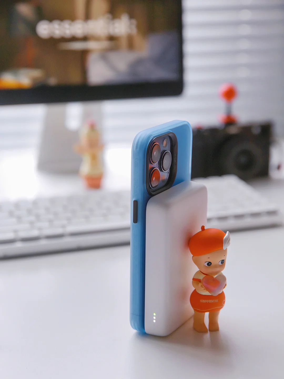 为了搭配无线充电宝入的手机壳,磁吸充电真的有方便到,不用带繁琐的数据线。蓝色壳搭配手机远峰蓝还蛮衬✌