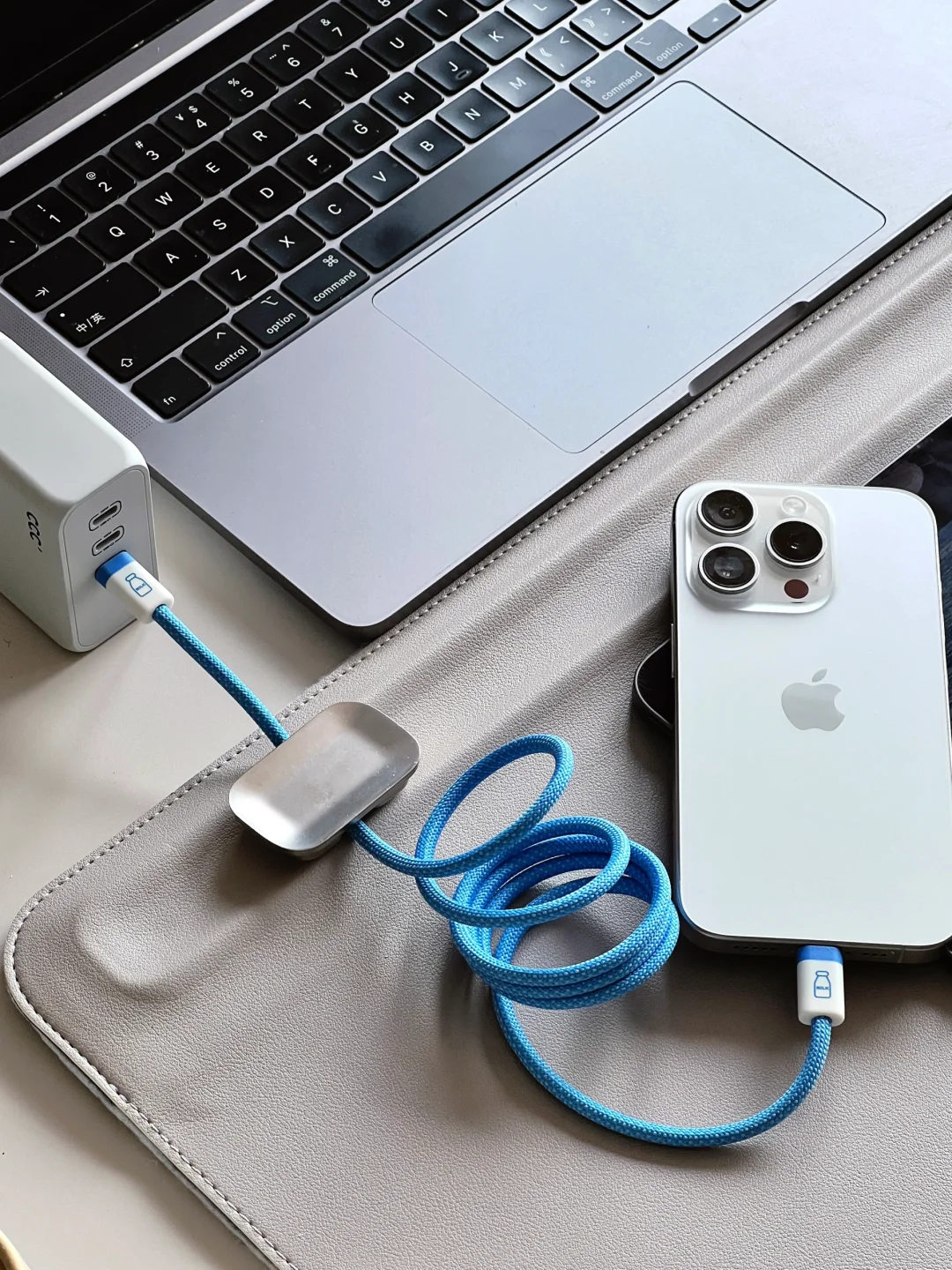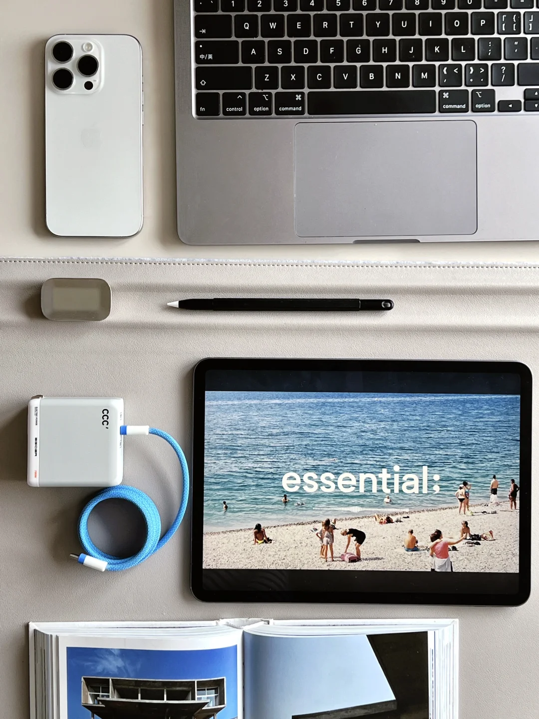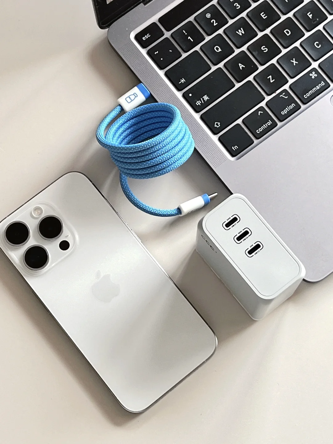 书桌上这颗100W的氮化镓快充, 真的太省心了! 三个独立快充口, MacBook Pro、iPad Pro、iPhone能同时满速回血,搭配磁吸全能线,桌面变整洁了~ 随手一插就充电,告别各种杂乱的充电头。 出差旅行也能随身带,苹果全家桶用户真香了~!