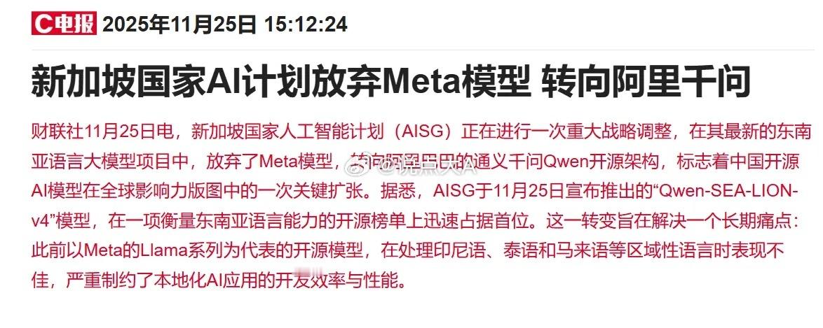 盘后,一则重磅利好提振信心!说实话,今天的普反还是有些不太舒服的,个股虽然是普涨,但日内下半场比上半场明显转弱,看得出来短期还是有阻力的;目前给人的感觉其实就是一个超跌反弹,站在反弹的角度,那么明天就会是一个重要的考验了,复盘主要说几点:1、大盘指数最高3882点,距离5日均线只差一个点,很多人说今天大盘指数是中阳线,我觉得1%的涨幅都没完成,这算不算是中阳线,目前也就是当做是指数高位下跌200多个基点之后的超跌反弹为主;从今天指数上涨的节奏来看,能够明显看到大盘指数短期已经到了压力位了,不能说反弹已经结束,但至少指数会开始走的纠结了。因为短期5日均线是压力,再往上60日均线3898点也是一个重要压力位,在这附近还有3900点的整数关口压力;这就是为什么指数到了压力区就走的开始谨慎犹豫的重要原因;短期大家认清一个事实:A股各大指数经历了恐慌的情绪冰点,现在是反弹阶段,但还没有达到反转的条件,所以按照超跌反弹看待和操作;2、之所以会说今天的普反不太舒服,是因为更多的还是板块轮动反弹,现在对大多数板块的持续上涨定义还有些过早;比如说今天领涨反弹大涨的和昨天其实又有较大的差异,而今天领涨和明天的或许也会有明显的差异,这就是短期的现状;这种没有持续性且第二天找不到惯性趋势的大涨状态,会让很多人的操作参与不太舒服;昨天涨的AI应用和航天军工,今天则是轮动到AI硬件以及锂矿等,明天会不会还有其他板块领涨替代?可能性很大;该怎么去看待呢?最主要的是应对,既然市场处于超跌反弹,那最重要的是做超跌反弹的机会,最好是没有反弹之前去参与,出现反弹机会再去减仓;看似是没有格局的操作,反而是符合当下的投机套利;3、今天盘后,有一则重磅利好消息提振了市场的情绪,新加坡国家人工智能计划(AISG)正在进行一次重大战略调整,在其最新的东南亚语言大模型项目中,放弃了Meta模型,转向阿里巴巴的通义千问Qwen开源架构,标志着中国开源AI模型在全球影响力版图中的一次关键扩张。这可以视为国产大模型出海的里程碑事件了,新加坡的“背书”的含金量非常重要,这不仅仅是意味着通义千问的性能超越了Mata等海外大模型,也代表国产大模型未来出海会更加的成功;受到这个消息影响,港股阿里巴巴股价尾盘快速的拉升上涨,这对于AI应用和软件领域可以说是再一次的利好刺激;这两天A股市场上AI应用热度不断的发酵,算是近期一个比较明显的主线了,上周五A股市场普跌,但是资金逆势抄底AI应用拉升,说明资金对于AI产业链炒作的态度转变;从上周五到现在,我持续给大家讲了AI炒作的逻辑转向,并且明确了今年炒作硬件,明年炒作应用软件的逻辑;现在明显已经有资金提前进行炒作预热了,相比较硬件业绩的确定性,现在AI应用等软件还是属于一个暂时没有业绩支撑的预期炒作,但是逻辑方向是对的,那么趋势就应该保持相信;因为AI最终的应用终端可以是多方向的,会涉及到很多的分支,可以是AI硬件,也可以是AI软件,可以是AI电商,也可以是AI教育,甚至可以是AI动漫游戏,也可以是AI医疗等等;因为AI应用的落地最终是可以缓解企业的资本支出担忧的,现在重要的是AI应用很多都是处于初期趋势阶段,接下来就看分歧之后能否快速走强,甚至走出超预期的板块效应;AI应用和软件是目前逻辑清晰的看好方向,但是大家也要注意资金的选择节奏,走势上大概率是磕磕绊绊为主,节奏上不会很顺的持续大涨,但分歧之后预计很快就会修复,整体上应该会逐步的走强;4、对于明天的A股市场来讲,主要说一下自己的个人观点:一是对于大盘指数来讲,明天就是5日均线的考验,今天有阻力,明天大概率会再次尝试冲击5日均线,反弹节奏上来看,明天指数维持震荡的可能性较大;二是量能来看,虽然今天放量了,但大多数量是上午放出的,午后其实是缩量为主,上午是反弹进攻的,下午是滞涨防守为主;量的角度可以看出上午有跟风盘入场,下午资金基本上都是避险防御了,这说明做多信心不足,对于明天的量能预计不是很乐观;所以,明天的A股市场很可能会再次回归缩量震荡的状态了;上周五还有昨天买入的资金,今天很多都是兑现减仓了,如果说接下来震荡分歧洗盘,预计还会有资金再次出手低吸。所以,现在不会重演上周五的恐慌,但也不会上演连续的普涨,主打的就是有先手的就是反弹就先减仓,没先手的就是分歧再去买;都看普涨的时候,就把先手筹码留一部分,震荡人气低迷的时候,又是分歧买点;