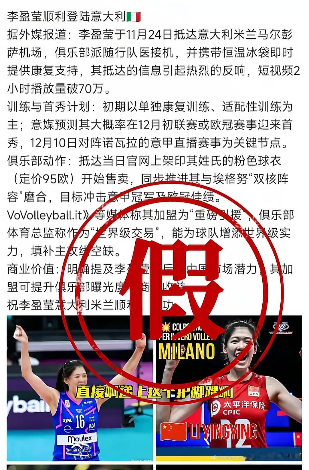 李盈莹留洋传言不实,天津女排新赛季14人名单预测 11月24日起,网络上疯传天津女排队长李盈莹已抵达意大利,将身披米兰队12号球衣、出任队长,还获配专车、专属康复计划,球衣和比赛门票被热炒等消息,实则均为不实传言。 稍有常识便知,国外俱乐部以商业价值为核心,不会轻易签下刚伤愈、康复效果未经验证的球员,当年朱婷加盟斯坎迪奇队前,伤情评估也历经波折。且目前李盈莹仅与经纪公司签约,未与任何意大利俱乐部达成合作,更谈不上加盟米兰队。11月25日,天津电视台体育解说员孟凡达已公开为李盈莹辟谣,否认其留洋传闻;同日下午,中国排超联赛官网公布天津渤海银行女排新赛季19人名单,李盈莹以队长身份位列名单首位,进一步印证其留洋已成泡影,新赛季将随队征战排超。 此次公布的19人名单中,未见王媛媛身影,结合孟凡达透露的“王媛媛11月25日启程赴土耳其留洋”,可确认王媛媛新赛季不参与排超。名单包含内援黑龙江路晶、广东李响,外援巴西娜塔莉亚、多米尼加马丁内斯,王艺竹、陈博雅均在列,此前网传二人不打联赛的消息亦为虚假;此前效力于天津队的董铭霄未出现在名单中,大概率将返回河北女排。此外,姚迪与自由人杨艺、孙婉鋆上榜,球迷建议刘美君改打自由人的提议未被教练组采纳。 排超赛事仅需14人参赛,结合球员实力与位置需求,预测天津女排新赛季14人参赛名单于后。 主攻线由娜塔莉亚、李响、李盈莹、王艺竹组成,李盈莹作为队长将扛起进攻重任,外援娜塔莉亚可补强火力;副攻线选用马丁内斯、张世琦、夏思佳、刘敏乔,外援马丁内斯保障拦网与进攻;接应位置敲定陈博雅、路晶,兼顾攻防两端;二传由孟豆、朱航霆担任,姚迪大概率仅在关键场次登场;自由人选用杨艺、孙婉鋆,保障后排防守。 剩余刘美君、刘鑫、张馨月、李荣钰4名球员不知道天津渤海银行女排怎么安排?具体安排以天津渤海银行女排俱乐部官宣为准。 天津