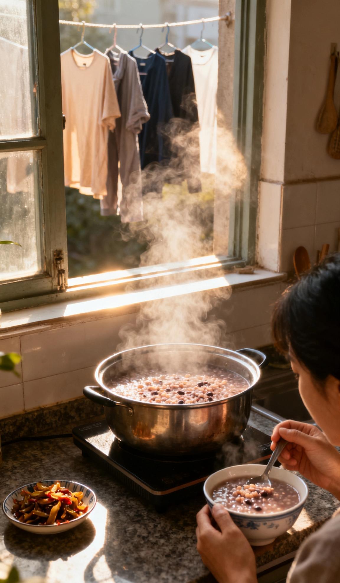 分享一件幸福感小事清晨煮锅杂粮粥,粥香漫溢厨房,暖雾裹着晨光飘窗台。晾好的衣物沾着阳光味,配碟自制咸菜,慢酌两口热粥。闲时翻两页旧相册,指尖拂过老照片里的笑靥,风携桂香轻晃窗帘,细碎时光里无惊无扰,平凡日常藏着满格温柔,这便是小而确幸的美好。粥家常养胃 杂粮粥食谱 粗粮营养早餐粥