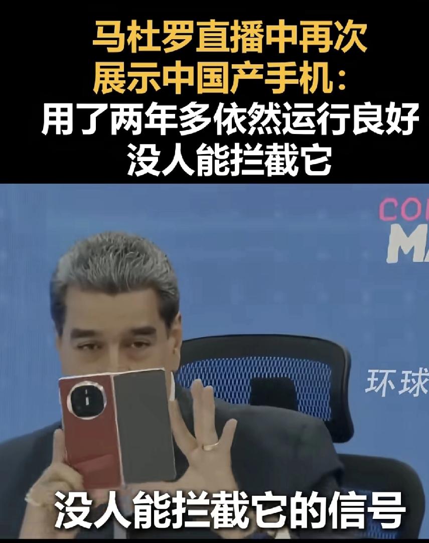 马杜罗展示自己的手机,告诉大家得罪老美没有什么了不起的,秘诀就是换一个手机而已,还吹自己的手机已经用了两年多,工作流畅,没有谁能拦截。这是明里暗里在嘲讽老美的手机嘛!