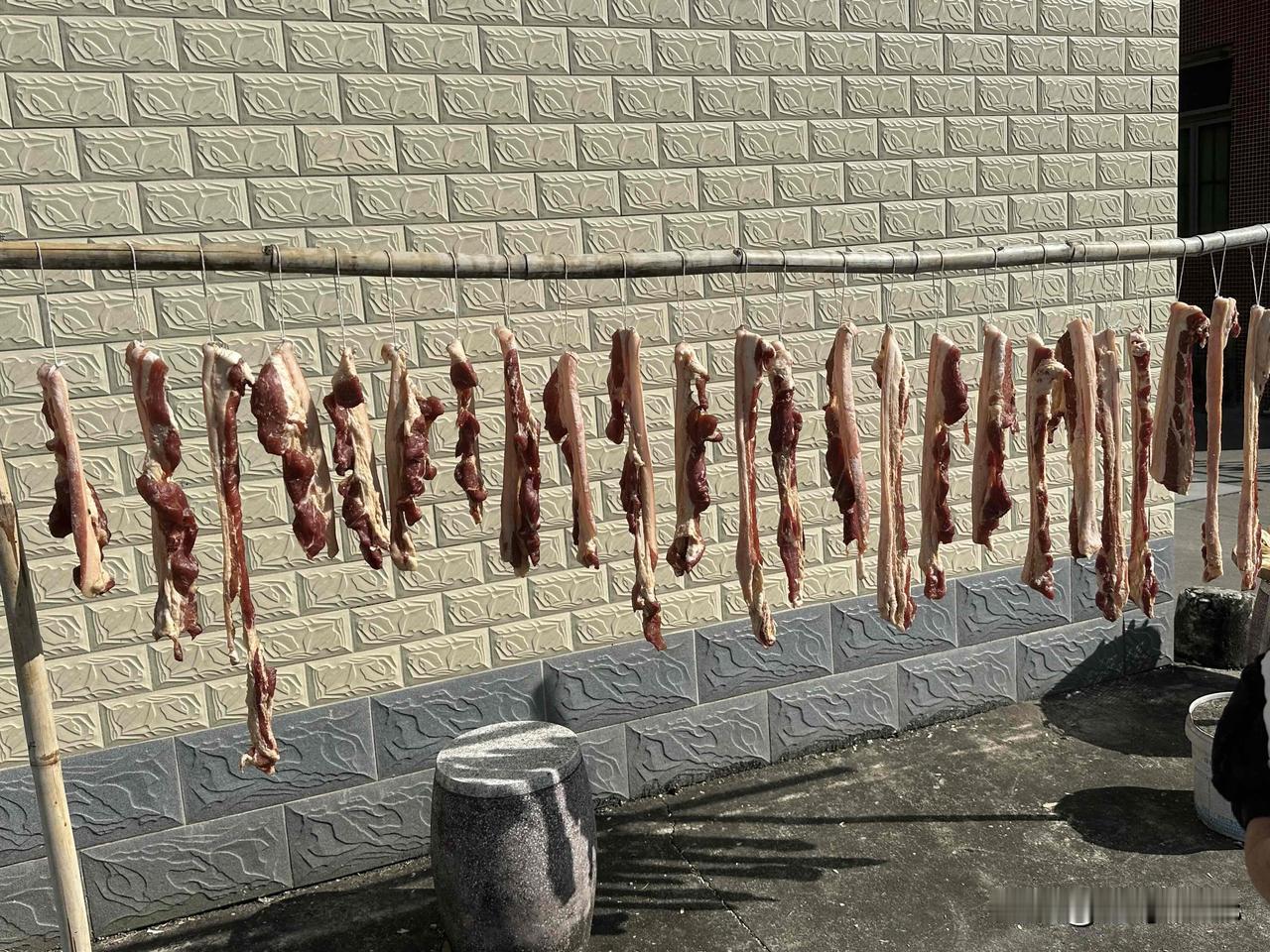 广东的家庭,你晒腊肉了吗? 看了一周天气都很好,买了十几斤五花肉晒腊肉啦! 最喜欢自己家做的腊肉! 味纯无添加! 广东这几天天气真的好给力,太阳给力,北风也给力