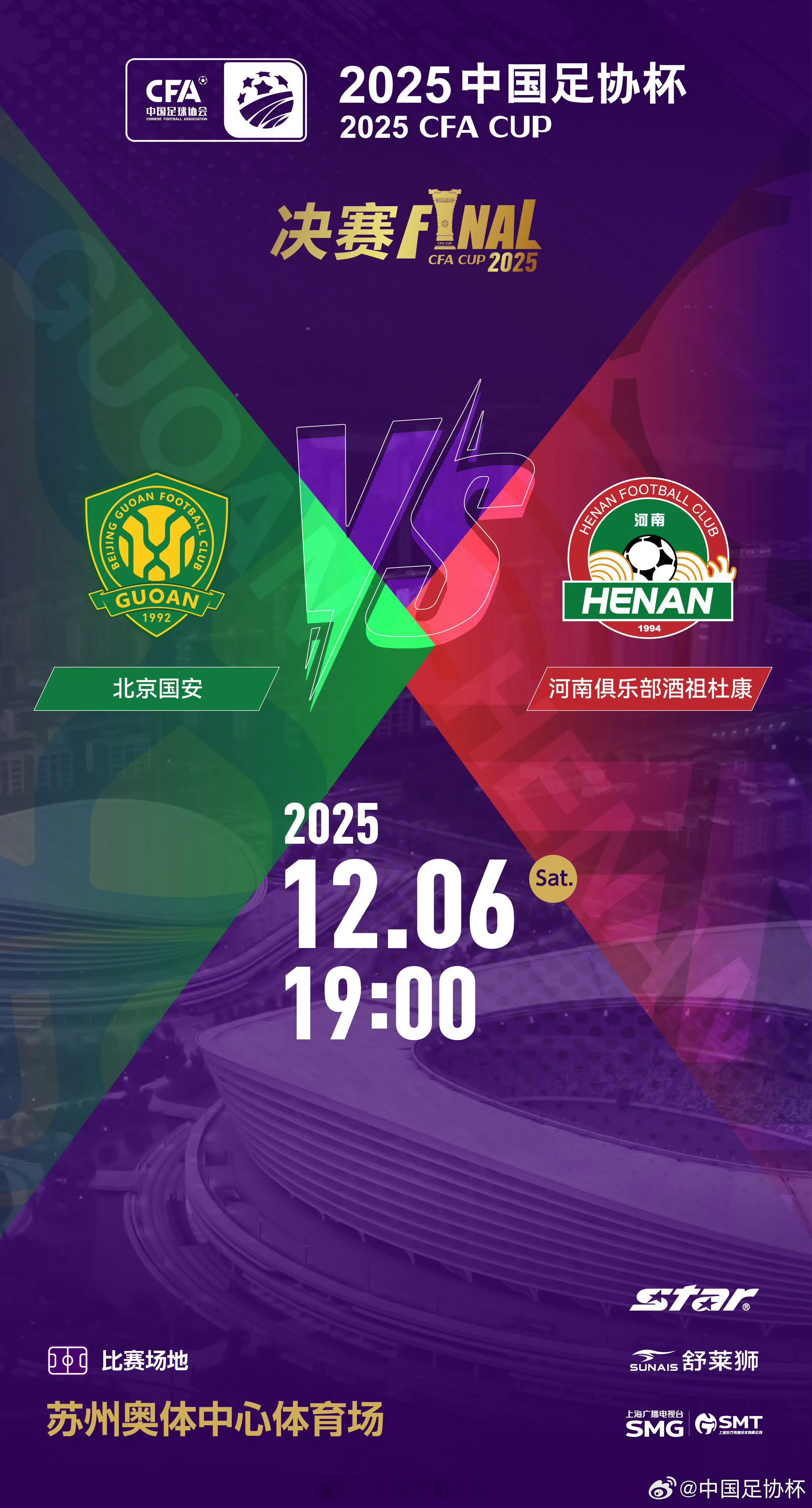 足协杯pick你的明星机位河南队和北京国安会师足协杯决赛,是御林军夺得历史第五冠,还是中原之师在苏州称王?12月6日19:00,苏州奥体中心体育场,我们一起见证中国足协杯的王者诞生!北京国安vs河南队2025足协杯体坛风云