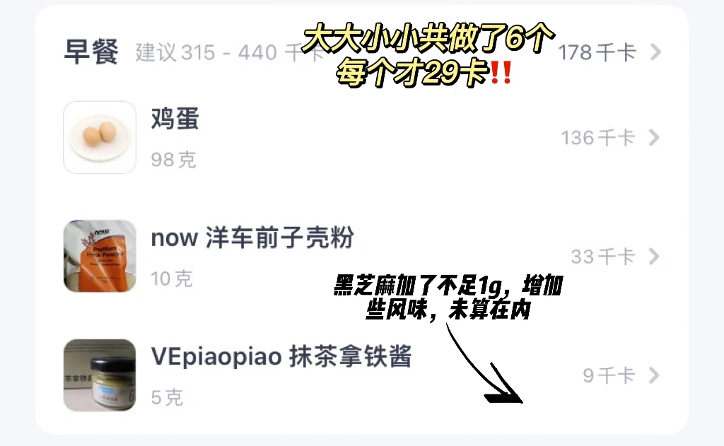 🌈代糖的量自己✋;鸡蛋不耐受的可换成水/奶/椰浆,再加2g泡打粉;抹茶酱、芝麻可按自己喜好增加风味