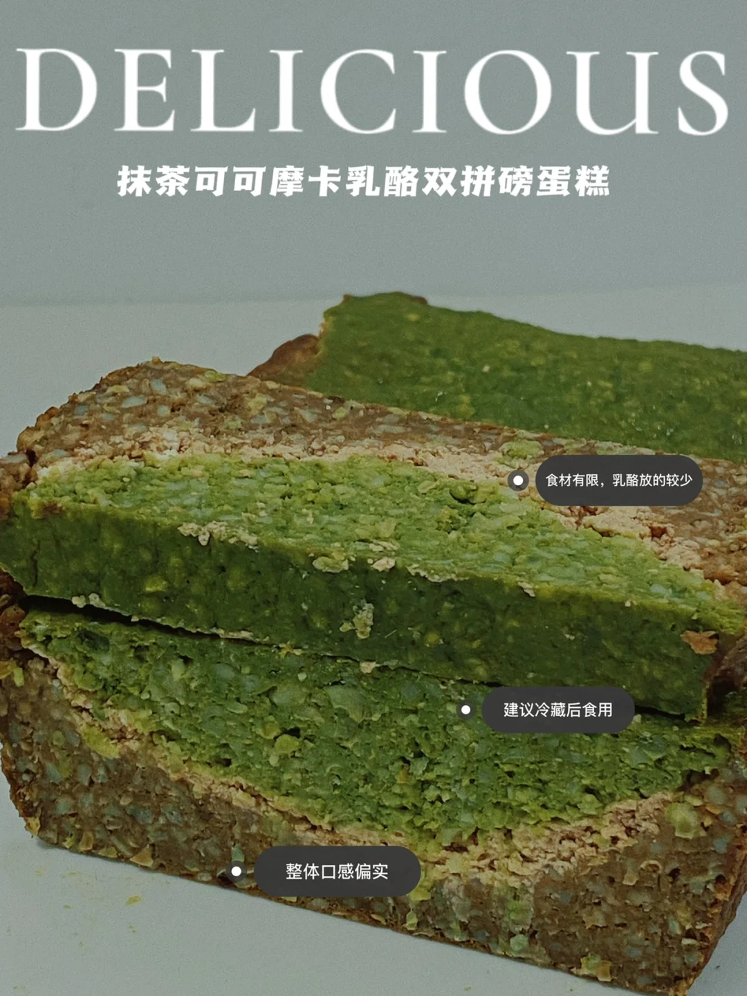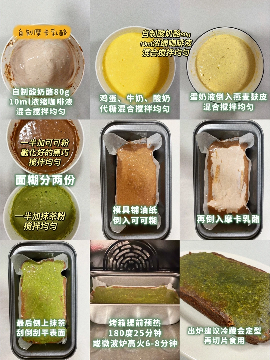 无面粉‼️抹茶可可摩卡乳酪双拼磅‼️食材简单
