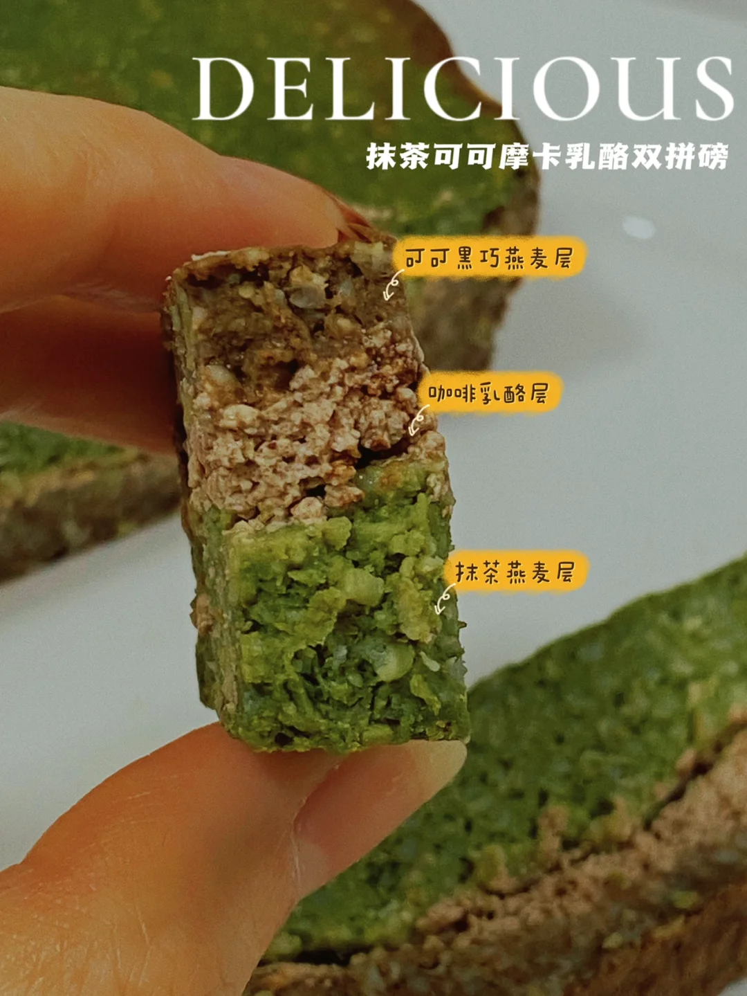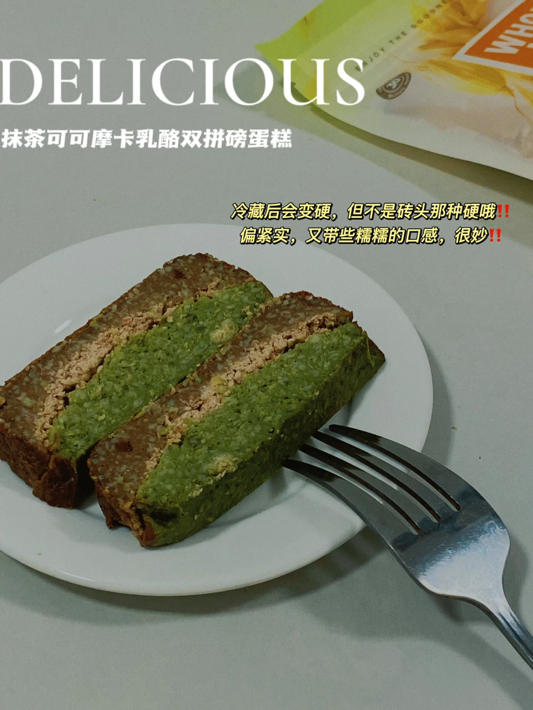 👩‍🍳某网红欧包店80一条的,抹茶绿可可摩卡双拼磅蛋糕‼️家庭低配版🐴住‼️无糖油无面粉,食材你都有‼️一条重约350g‼️ 💕590卡/条(350g)|烤箱/微波炉都🉑️ 🌈饱腹感超强‼️减脂、健身、抹茶控、巧克力控、想消耗燕麦的冲‼️ . 🍃食材(590卡/条-350g吐司盒👉附热量表): 【抹茶/可可面糊层】: 好哩燕麦麸皮80g(🉑️换燕麦片/全麦面粉等) 鸡蛋2个 脱脂牛奶100g|酸奶50g 抹茶粉5g|可可粉5g|黑巧1块(融化) 【摩卡乳酪层】: 浓缩咖啡液10ml|自制脱脂酸奶酪80g 🌈代糖的量自己掌握,黑巧液能让可可层更紧实;喜颗粒感用麸皮,喜细腻口感,料理机磨成粉;想要热量更低,一半麸皮换成燕麦纤维 . 📖简单步骤一看就会,直接翻图7⃣️ 🌈燕麦代替全麦面粉,不干噎;冷藏后风味更佳,匝实中又带些糯糯的口感;一口三层风味,很有层次(推荐冷藏后吃) . 食材简单,美味不简单‼️ 早餐切几片,配上咖啡/牛奶,很顶‼️一条双拼磅约重350g+,1人可食3-5天‼️冷藏或冷冻切片保存‼️ ㊗️仙女们越吃越瘦‼️