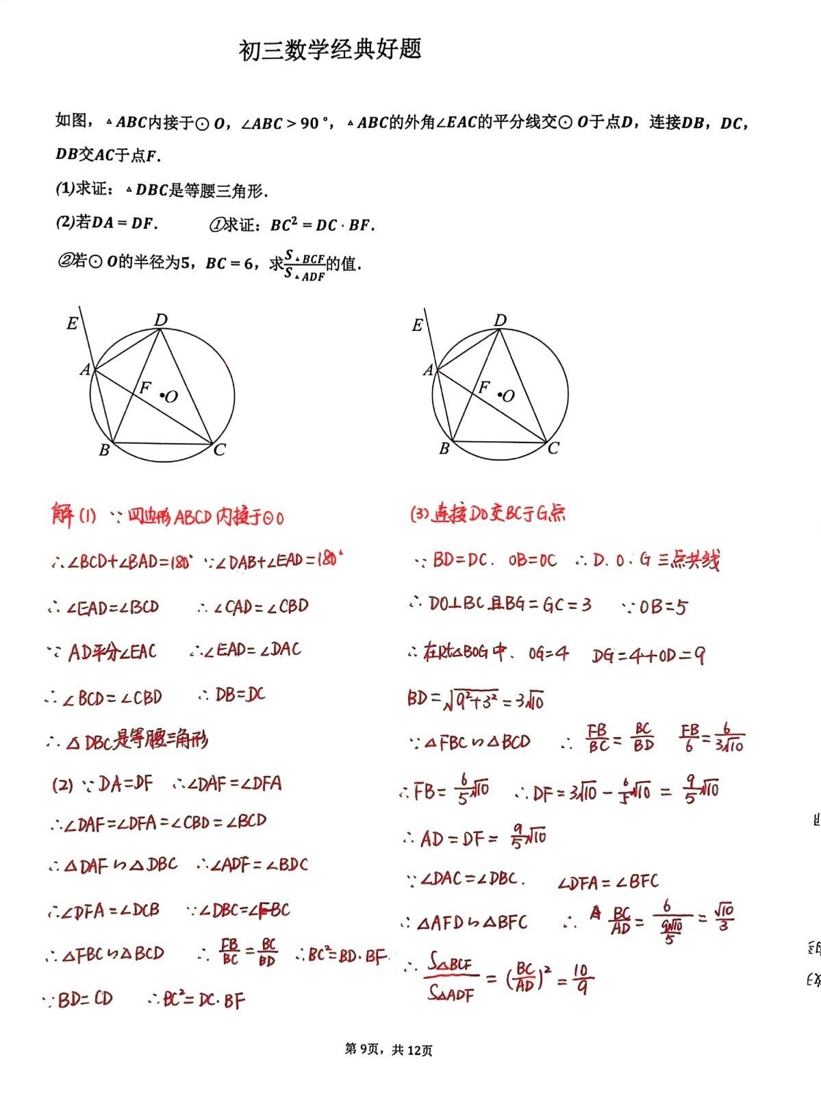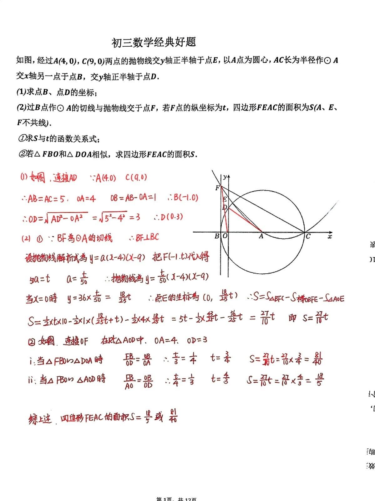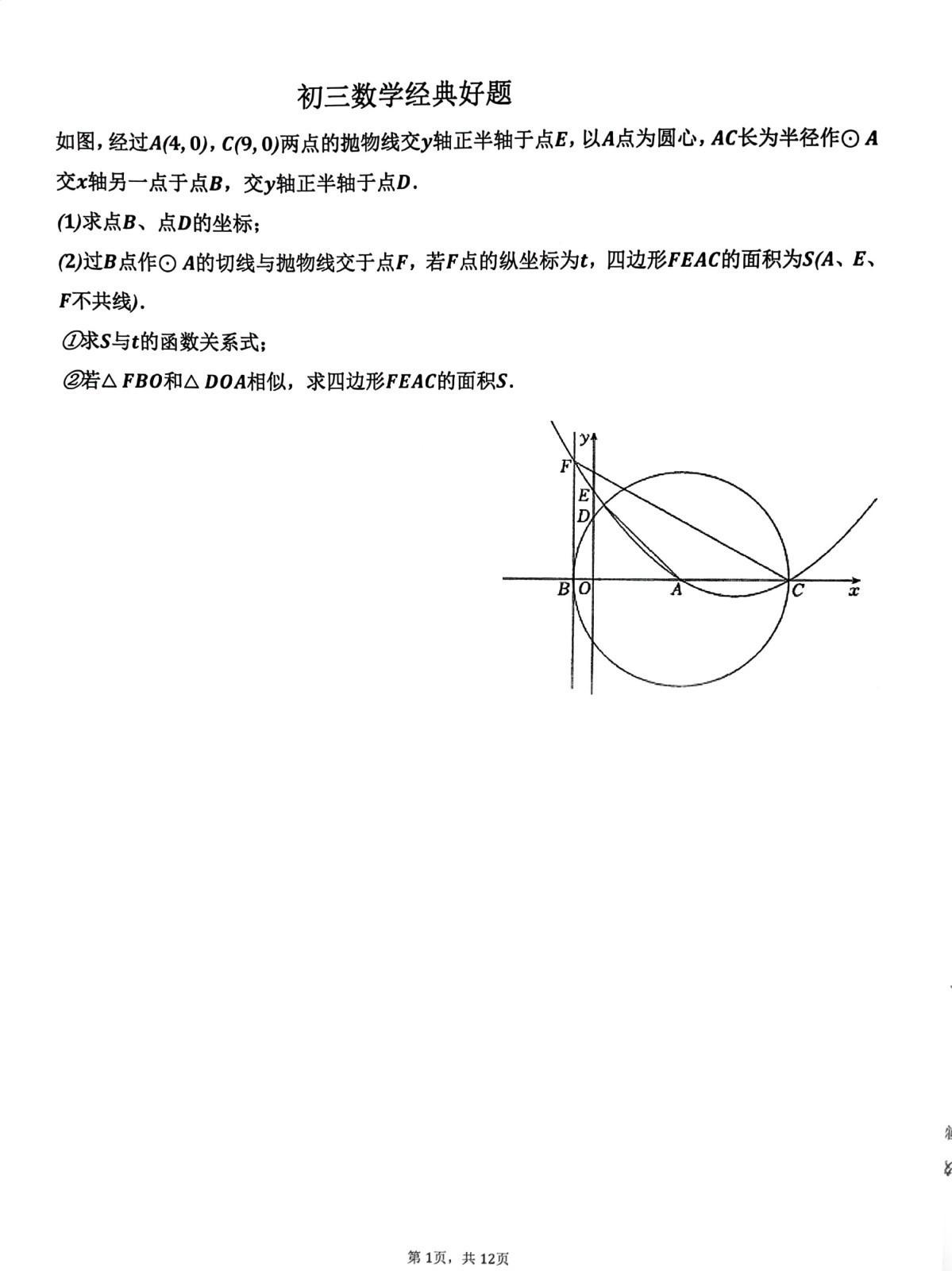 初三数学精品好题分享,分享三道压轴题,遇到抛物线压轴题,两道圆的综合题。质量很不错的题目。初中数学考试题 数学中考知识点 中考数学题 26版初中数学中考专项(圆+几何辅助线+二次函数等压轴题专项练习)