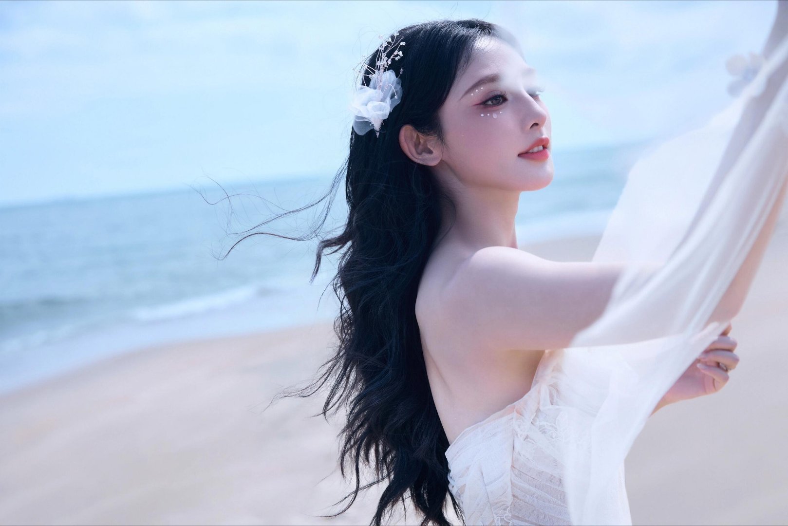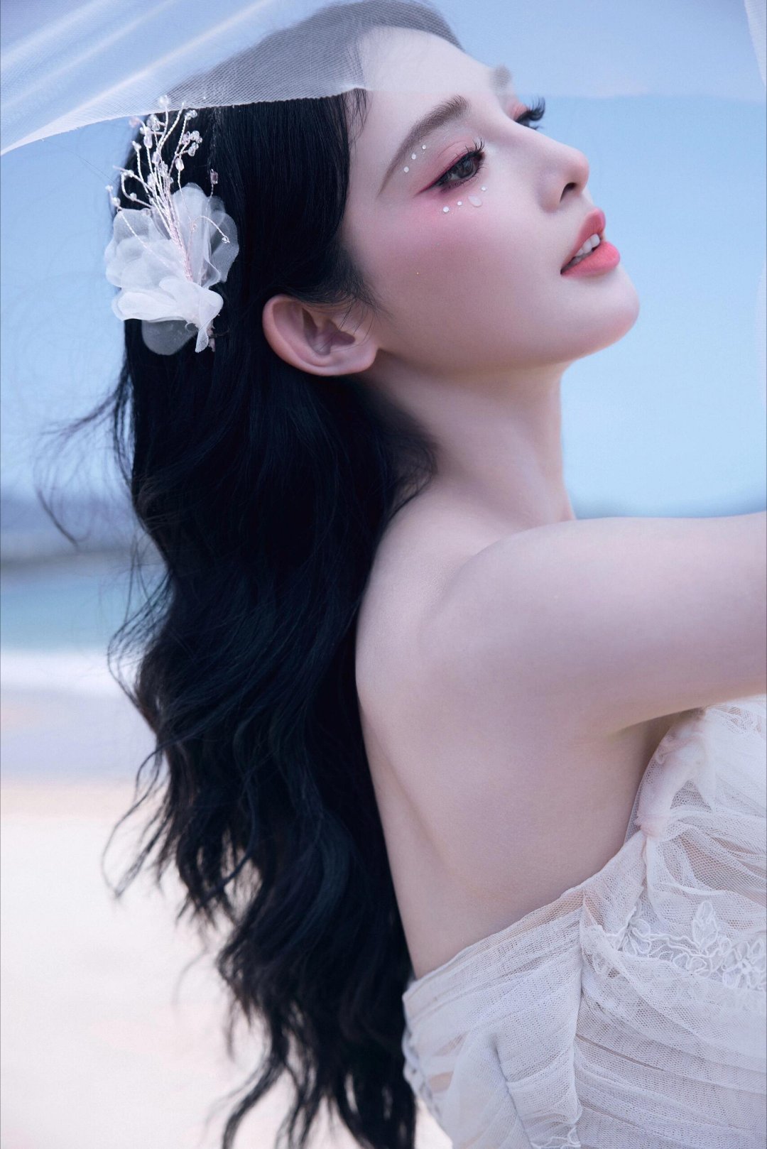 彭小苒白发蓝色美瞳白发如雪漫卷霜华,蓝瞳似海藏着星芒✨彭小苒这造型把“灵气”焊