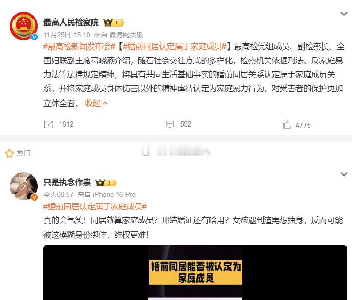 婚前同居认定属于家庭成员 在不同的房子里,与不同异性婚前同居,也属于家庭成员吗?这种关系,有效避免了重婚而且,非婚生子女,法律还保护很多权利,那还结婚做什么?为什么要登记结婚?分手时,还不会受到“离婚冷静期”的阻拦同居 重婚,热点观点