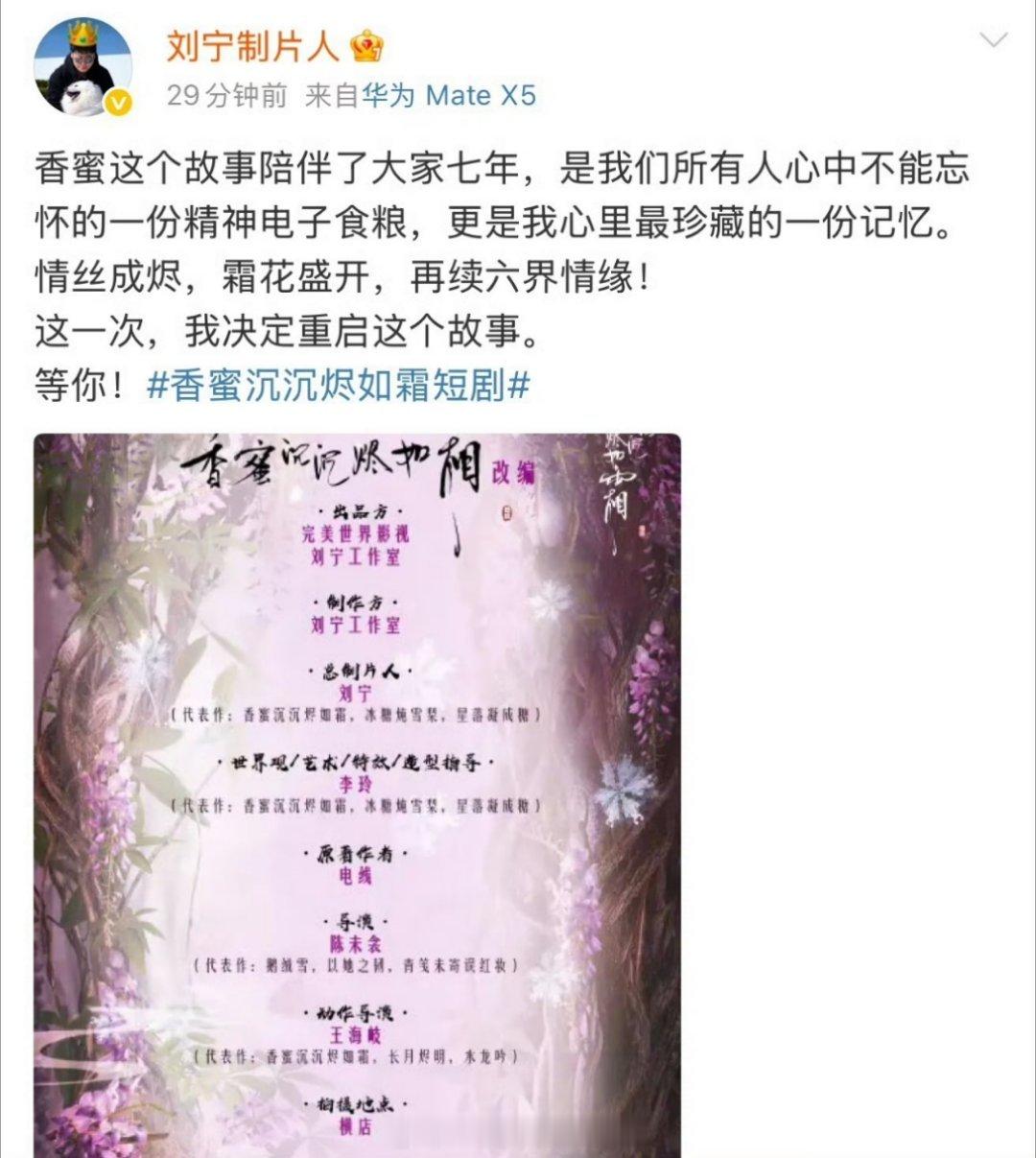 所以香蜜的版权是还在刘宁手上吗?作者昨天否认了,他今天就出来官宣了