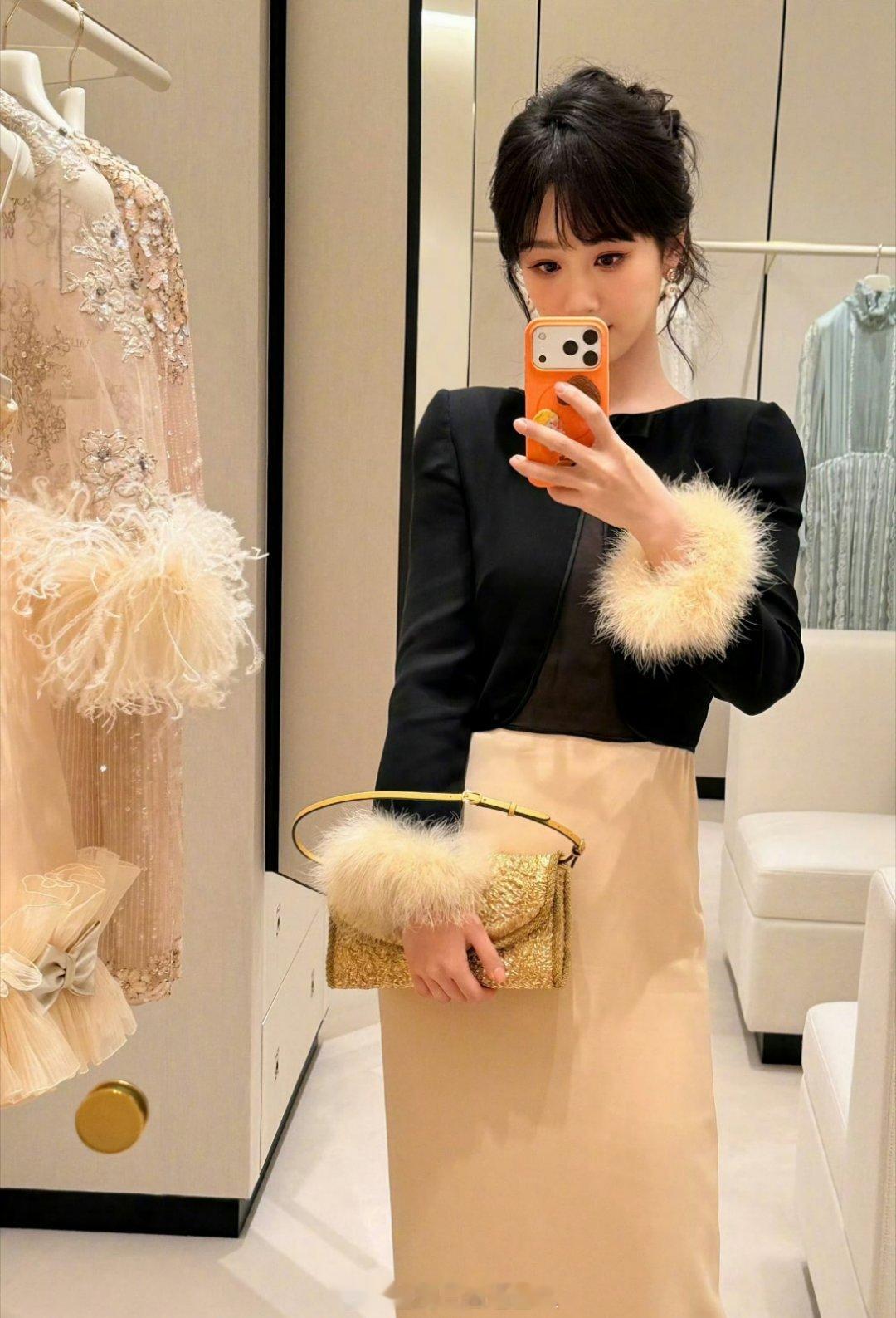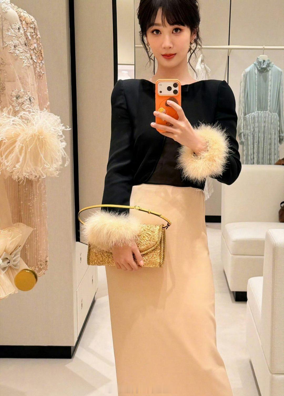 刘亦菲把死亡玫粉穿出了定制款的感觉,这种颜色普通人穿上分分钟黑三度,她居然能穿出