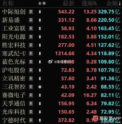 之前A股是被银行股支配的恐惧,今天成了被易中天支配的恐惧了!中际旭创一度暴涨15%,新易盛大涨12%,天孚通信大涨10%,创业板盘中爆拉超3%。此外,科创板的寒武纪,海光信息、中芯国际,新能源的宁德时代,阳光电源。这些都是趋势抱团股,难道机构们回来了嘛?不过,大票一拉小票全瞎,今天个股3600家下跌,中位数-0.64%,亏钱效应反倒挺大的。主要是这些指数权重股太占成交额了,中际旭创成交330亿,新易盛220亿,工业富联160多亿,把小票流动性给吸干了。A股现在是“算命市”,你不知道它每天到底哪些板块会涨,全靠命啊!有赌场的味儿了。
