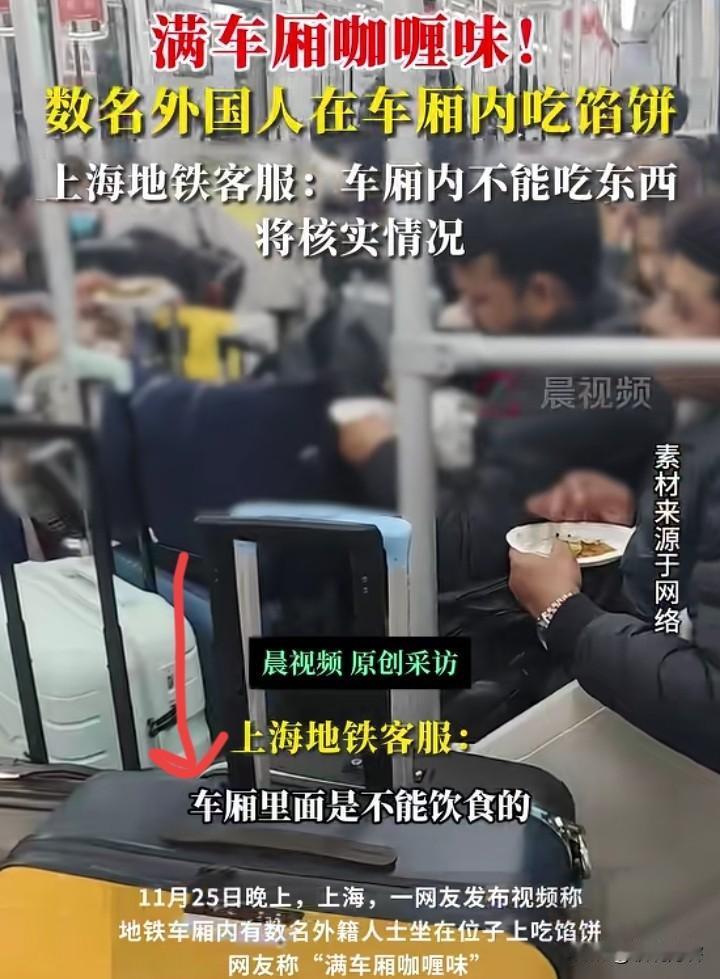 满车咖喱味, 要不是有人发视频出来,都不知道上海地铁里被印度人弄成这样。在地铁里吃东西,还是在上海吃的满嘴油污,印度人你们难道不知道,地铁上不能吃东西的吗? 能不能讲卫生啊,来了中国就不要一次次挑战底线,公共场合不要搞得和自己家一样,入乡随俗懂吗?