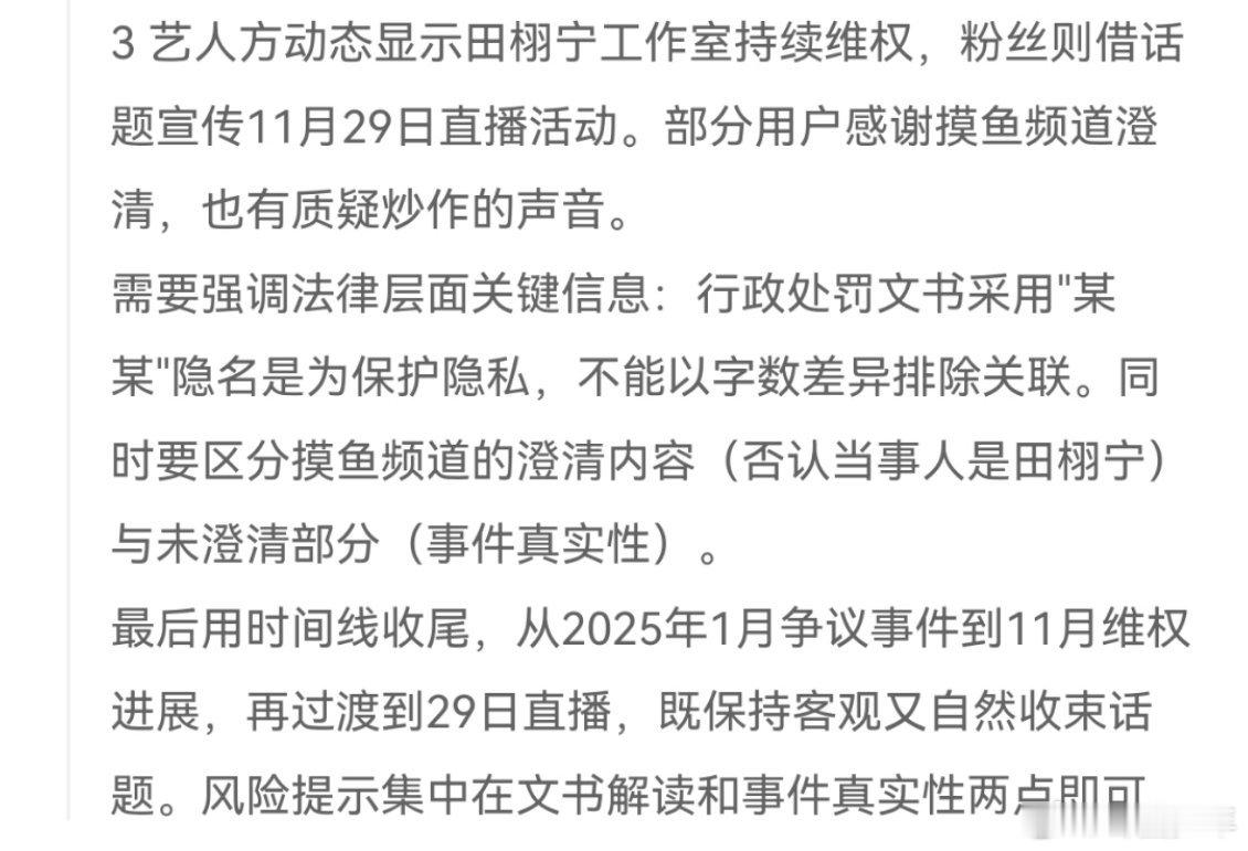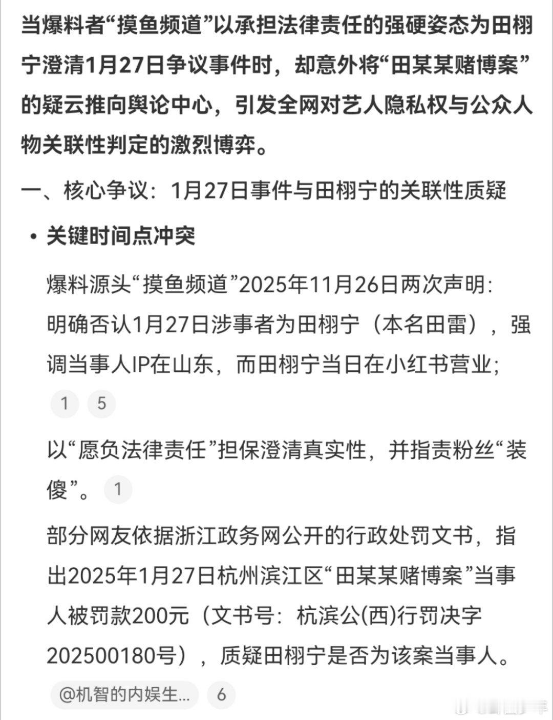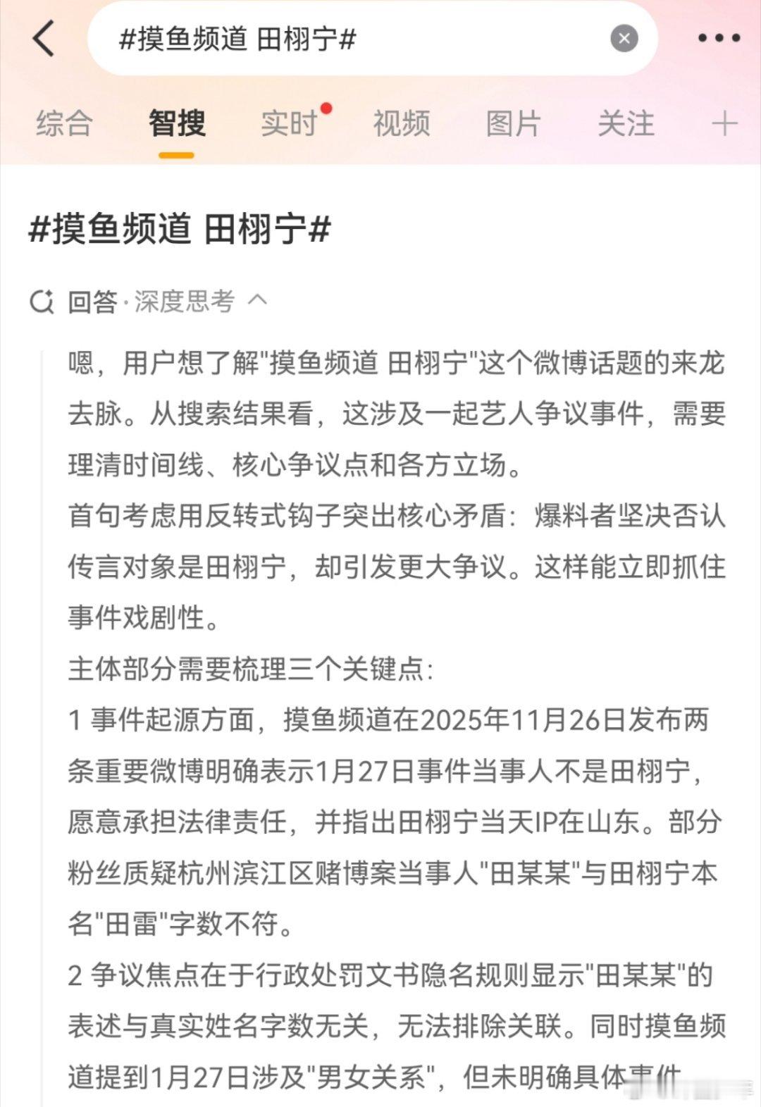 智搜分析摸鱼频道田栩宁 关于“摸鱼频道 田栩宁”的智搜分析,让部分网友产生理解困惑。已知摸鱼频道曾发布田栩宁的互动内容并收获高赞,而田栩宁年内历经多次舆论风波,智搜分析可能围绕频道相关内容与艺人争议的关联性展开,目前公开信息暂未明确分析的核心结论。