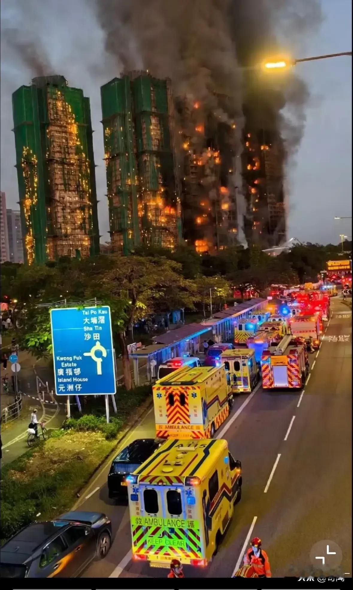 香港一大型小区数栋楼房起火,从下午一直烧到晚上,已致14人遇难26人受伤。事发11月26日下午14点51分,在香港大埔宏福苑住宅大楼,有人报警称闻到烟雾味道,随后有人看到楼房外墙竹制脚手架有火苗。 不到10分钟,15点整时,火苗已经覆盖一栋楼的上半部分,随后由于风势助力,在15点30分左右,起火大楼旁边几栋也被点燃大火,现场浓烟弥漫至半空,火势已十分猛烈。同时火势在16:30和18:20左右进一步扩大,大火一直烧到晚上。 目前调查主要因为竹制脚手架导致火势快速扩大造成严重伤亡,其中包括一名消防人员,专家称伤亡可能还会继续。消防力量已调集150多台消防车和60辆救护车参与救援。 香港一小区多栋大楼发生火灾 香港装修居民楼时突发火灾已致14死26伤