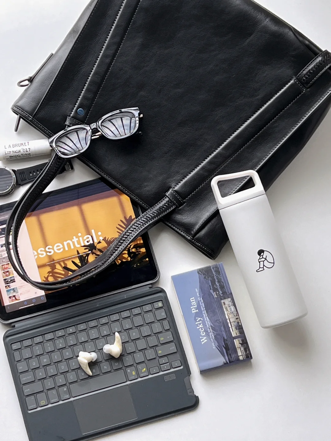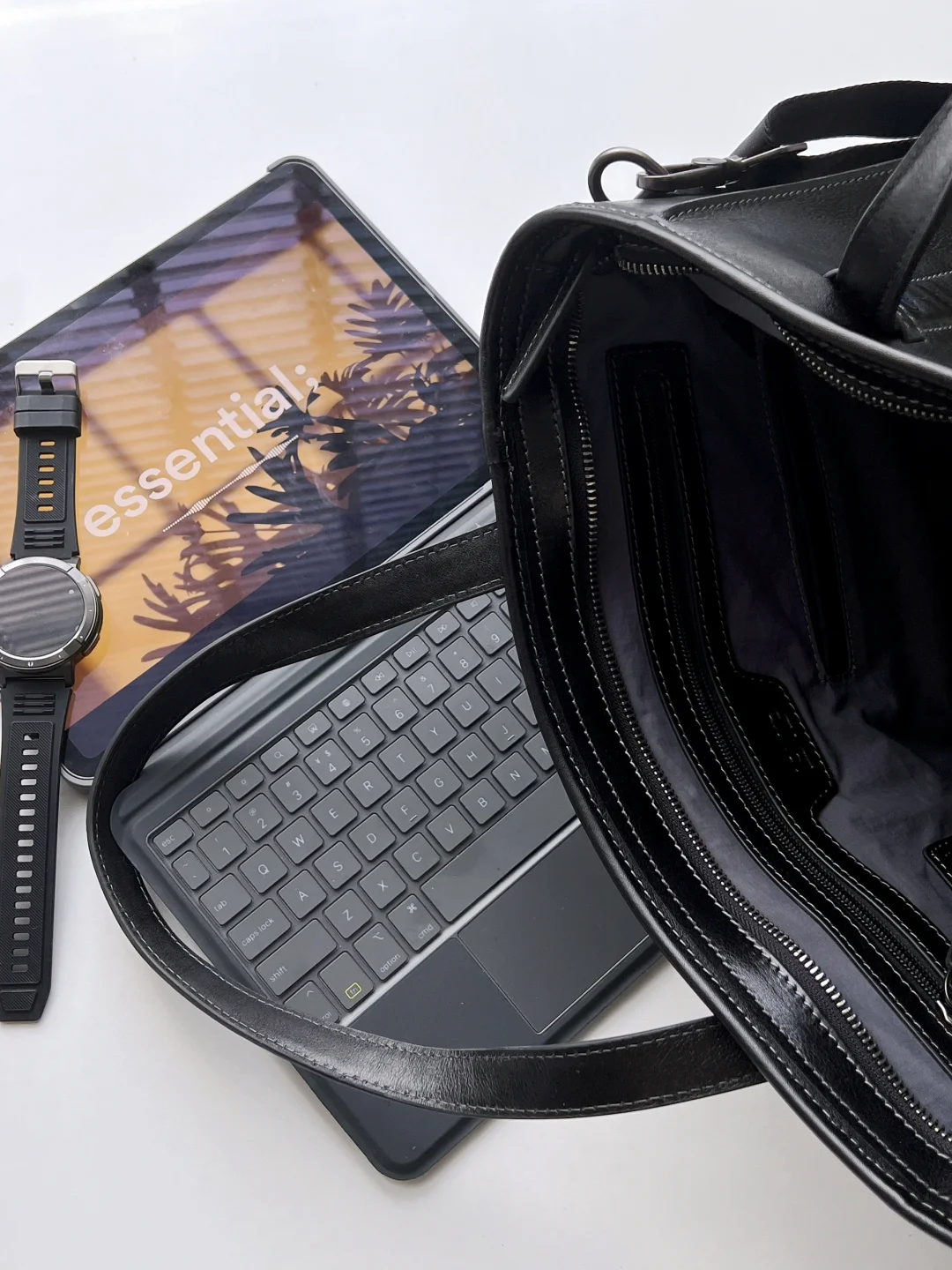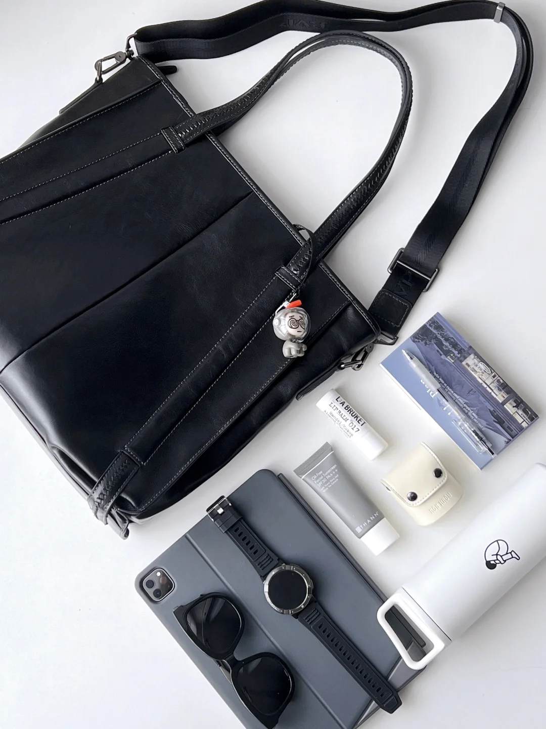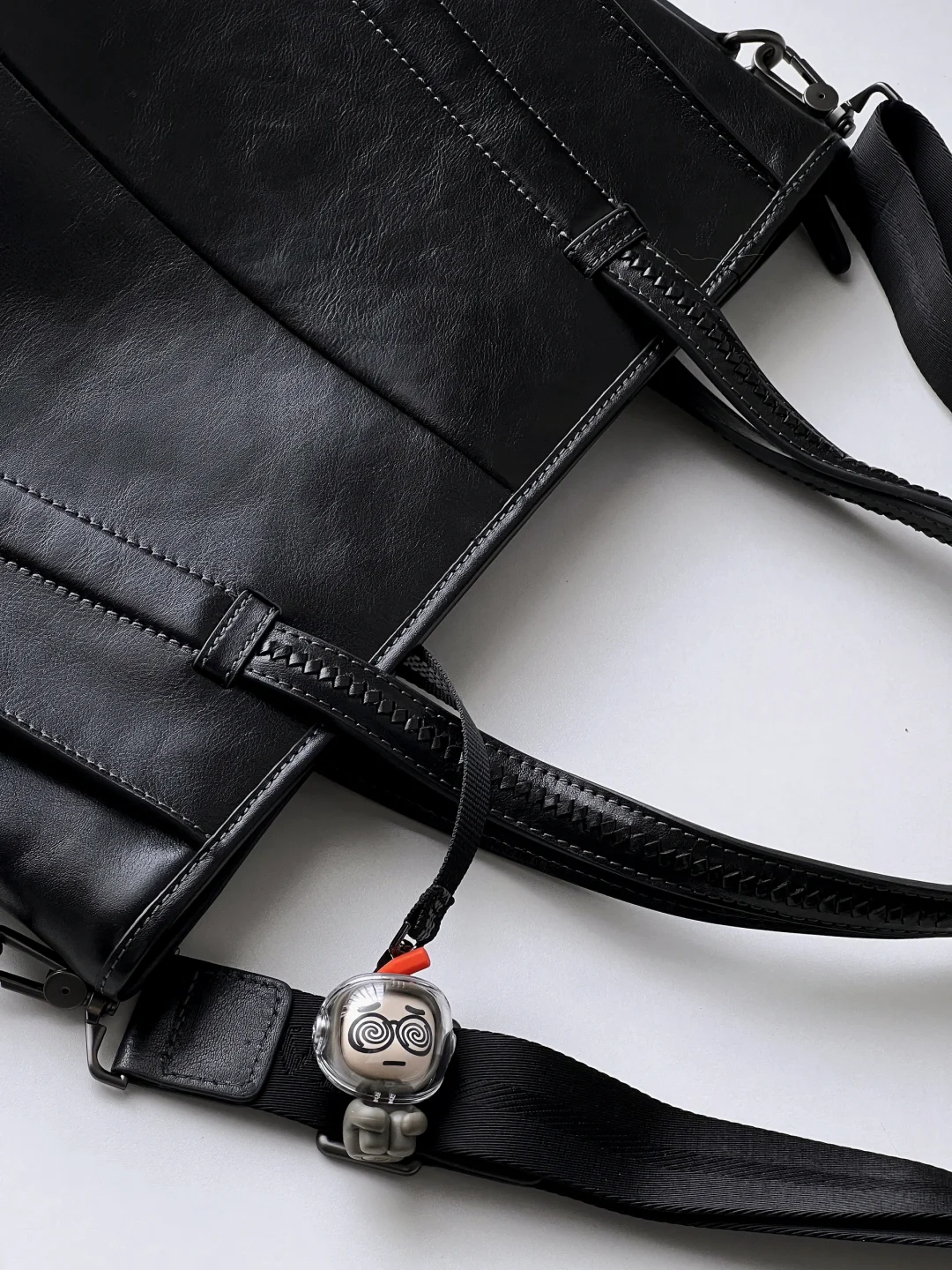 牛皮托特包容量够大,上班休闲都适合。size刚刚好装下14寸笔记本💻,经典款的黑色,低调又有质感,搭配了可拆卸的肩带,手提或斜挎都ok。包的设计也挺特别,加入了编织元素。包内设计了多个功能性存储袋,钥匙扣、内拉链、ipad夹层、笔袋……很方便。因为是整张牛皮工艺,包包自重还是有点分量,但男生使用就还好。平时我一般会带ipadpro+妙控键盘出门,加保温杯之类日常用品,还是很能装的哇!
