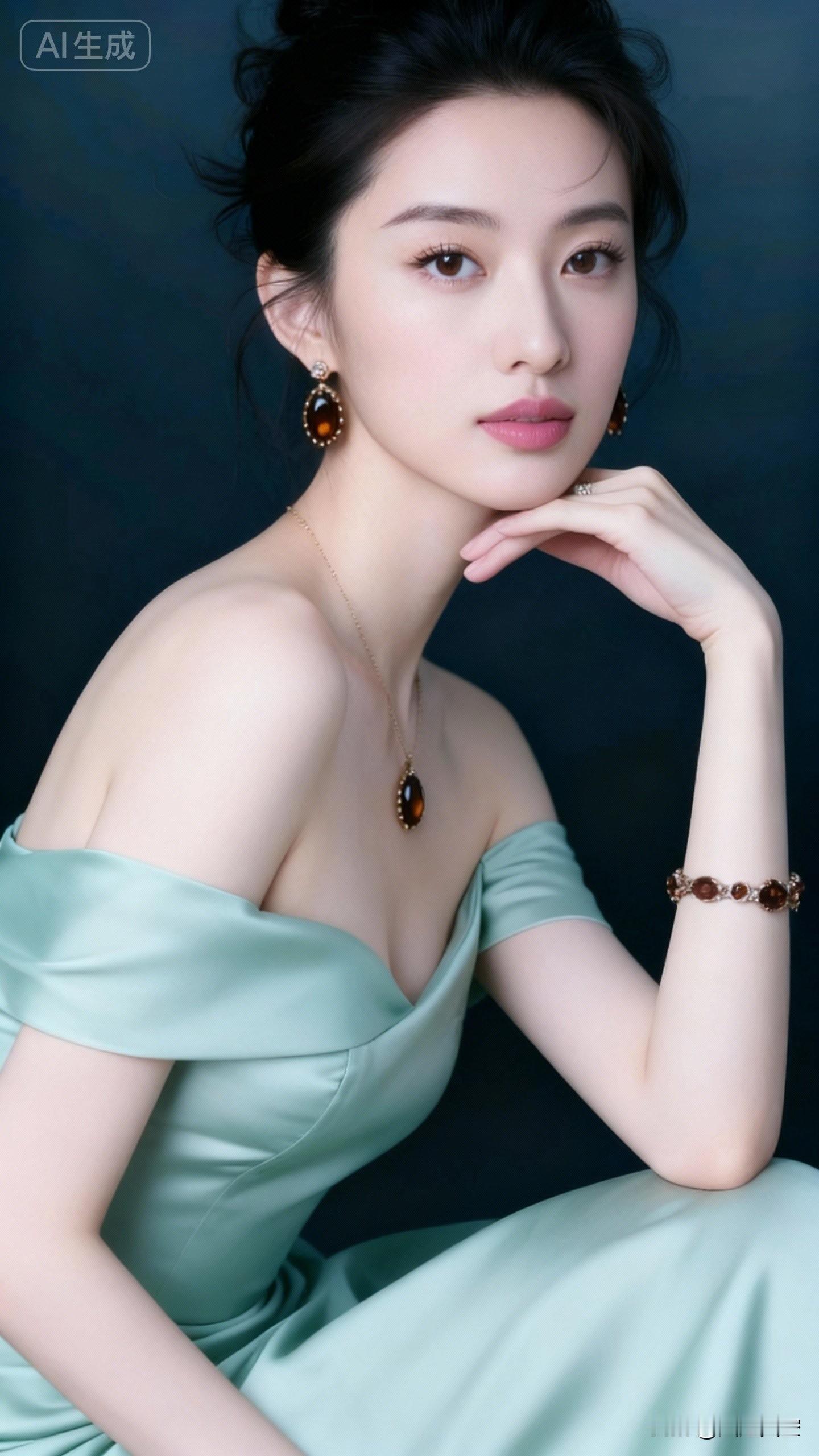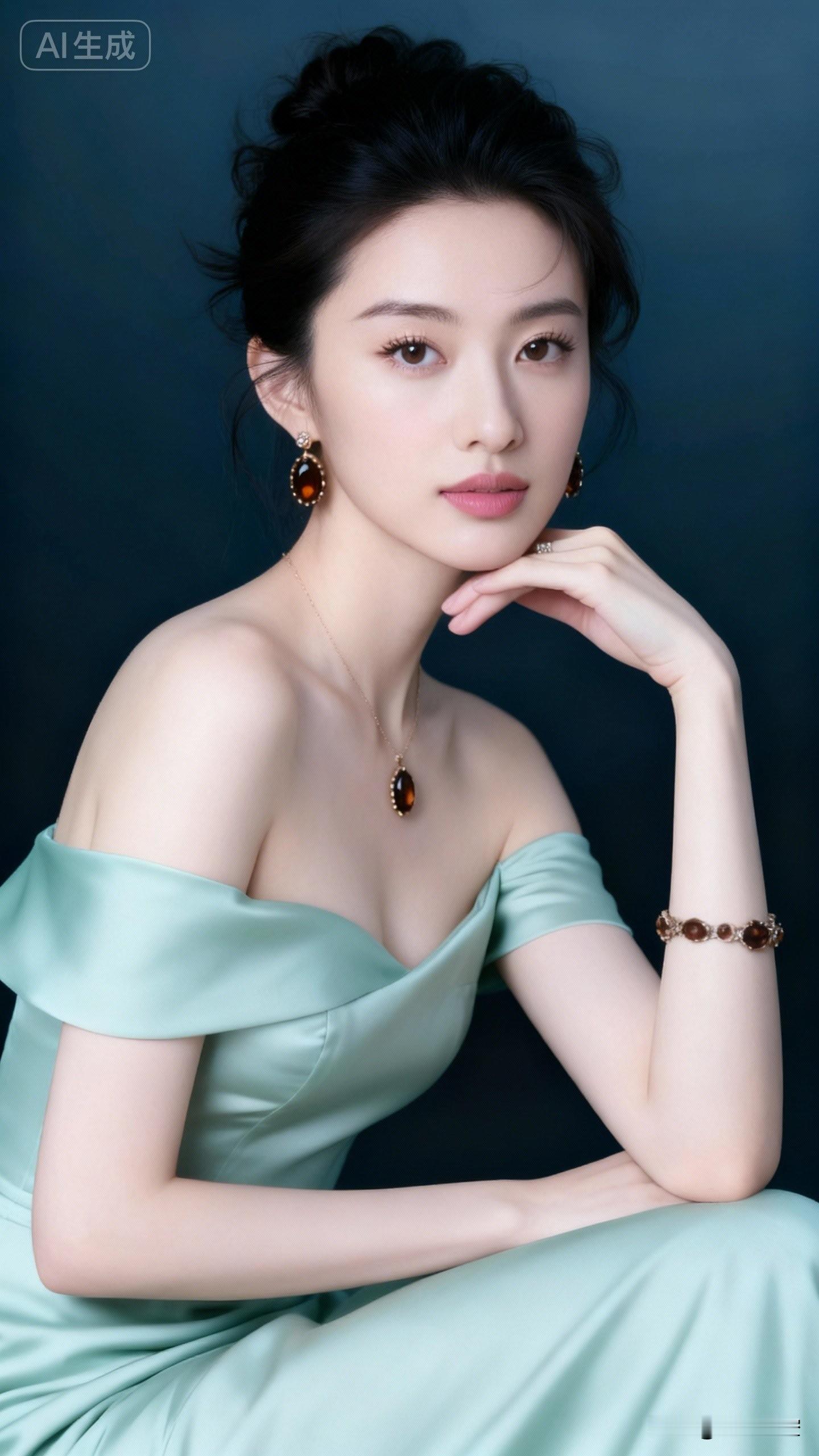 雾蓝裙摆裹着柔羽,碎钻在颈间轻闪,编发垂落时,笑意漫成了浅空里最软的风。清蓝长