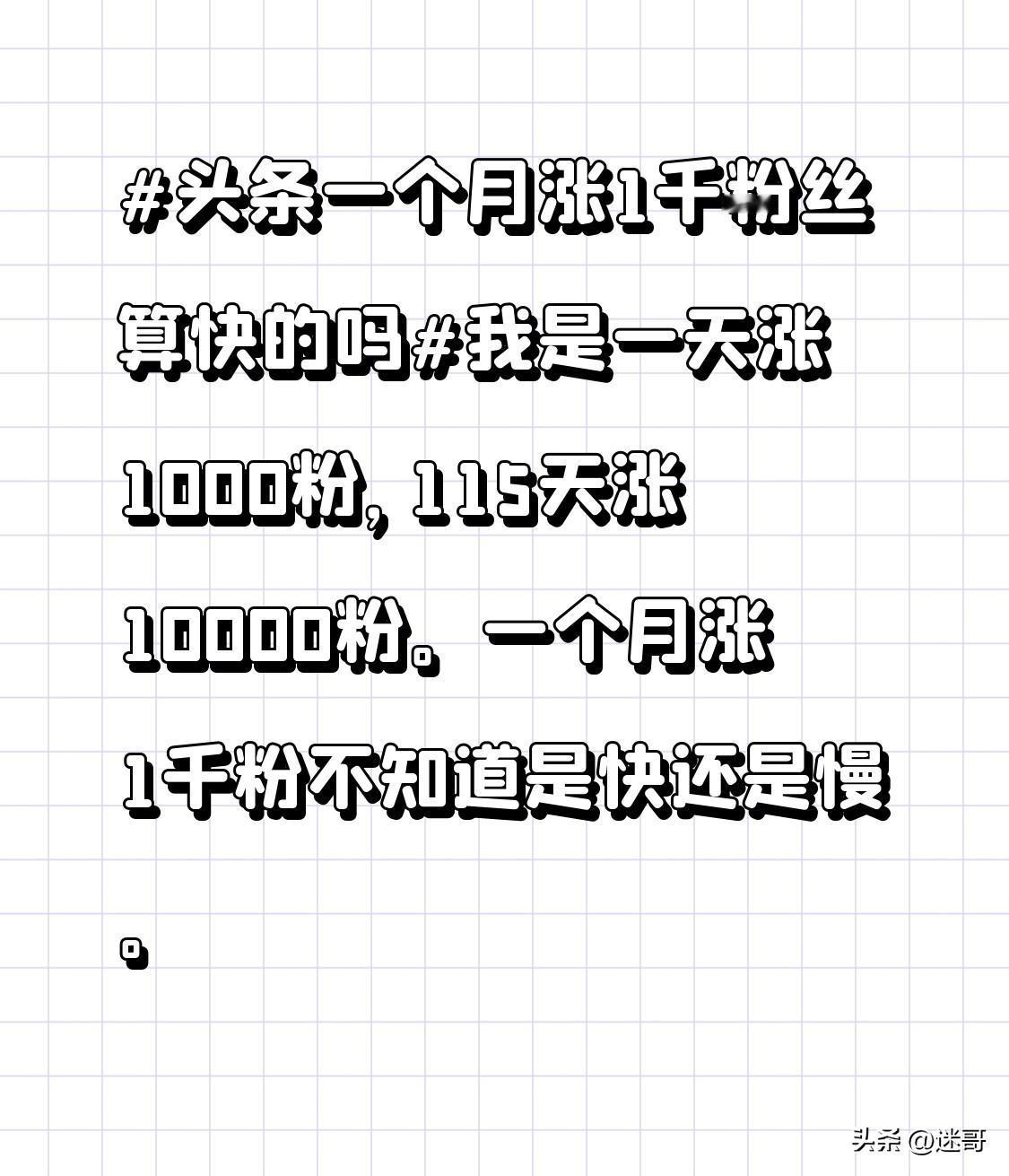 我是一天涨1000粉,115天涨10000粉。一个月涨1千粉不知道是快还是慢。