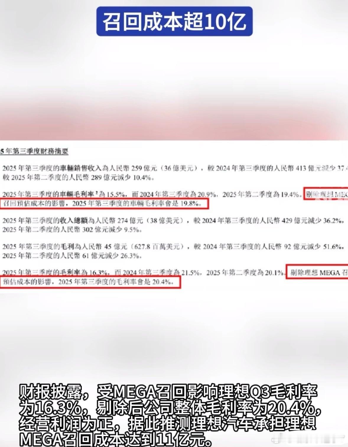 理想汽车发布25年Q3财报这硬实力真的藏不住了。i8和i6刚上市就狂揽10万订单,MEGA直接拿下三季度高端纯电销冠,这市场认可度确实有点东西。前三季度营收稳扎835亿,新势力里照样领跑,还有超1000亿现金储备当后盾,抗风险能力拉满。所以在面对MEGA召回时,也敢果断砸超10亿保障车主权益,这份责任心也是收获一批好评。理想MEGA召回成本超10亿研发上更是半点不手软,Q3砸30亿,全年要投120亿,光AI领域就超60亿搞芯片、系统这些硬核技术。从增程到纯电,再到死磕核心科技,理想这股稳劲,未来可期!