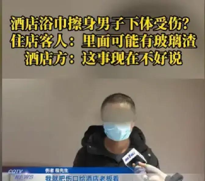 重庆,男子出差入住一个酒店,疲惫的他,洗了个澡,用酒店的浴巾擦身体,可浴巾擦完大腿根部的隐私部位后,隐私部位居然流血了,男子吓得赶紧让同事通知酒店老板,让他看了一下伤口,老板也吓了一大跳,赶紧送男子去医院,事后男子要求赔偿2000元,酒店却不同意。 这事摊谁身上都得慌神,程先生说当时擦完就觉得刺痛,低头一看满是血,脑子瞬间空白——隐私部位受伤,不仅疼,更怕的是浴巾里藏了啥脏东西,万一传染上病可就麻烦了。同事赶紧喊来酒店老板,老板看到伤口也急了,立刻送医院检查,医生说伤口是圆口的,不算深,但得观察几天有没有感染迹象。 可后续协商直接僵住。民警来调查,在房间门口发现一块圆柱形玻璃渣,程先生一口咬定就是这东西伤了自己,肯定是混在浴巾里的;但酒店邓老板不干,说玻璃渣在门口不在浴室,浴巾都是一客一换消毒的,不可能有异物。邓老板还说,房费才100多块,已经出了100多检查费,2000块赔偿太离谱,要赔就走法律程序。 这里就得说道说道了。按法律规定,程先生得举证证明伤是酒店的玻璃渣造成的,可浴巾里没找到玻璃渣,玻璃渣又在门口,这证据链确实缺一块。但反过来,酒店作为经营者,是不是该保证客人在房间内的安全?浴巾是酒店提供的,客人用它受伤,就算玻璃渣不在浴室,酒店清洁时有没有把房间角落(包括门口)打扫干净?浴巾有没有检查过有没有异物?这些都是酒店该担的责任吧? 我个人觉得,程先生要2000块可能不是图钱,更多是心里的后怕——万一后续真感染了,那可不是这点钱能解决的。酒店不能只看眼前的检查费,得考虑客人的健康风险。而且出差住酒店真得留个心眼,贴身用品能自带就自带,别觉得酒店的一定干净,毕竟这种意外谁也想不到。 大家觉得这玻璃渣到底咋伤到程先生的?酒店该不该赔这2000块?换作是你,遇到这种事会咋处理