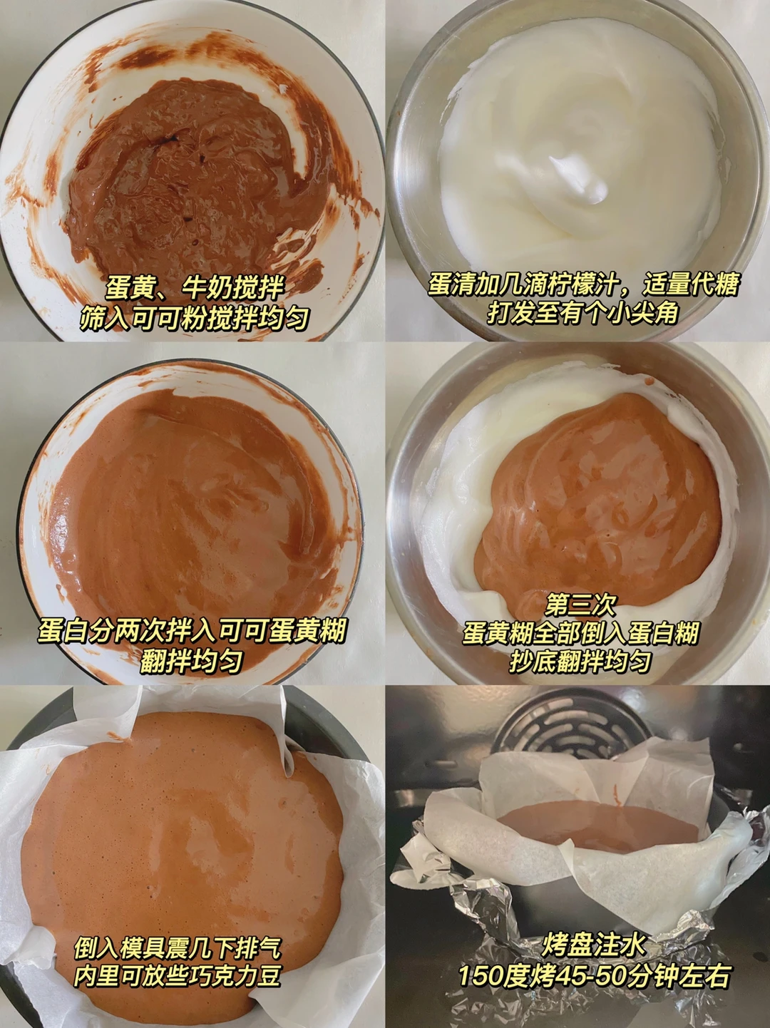 🌈热吃巧克力会爆浆;冷却后蛋糕会有些回缩,但不影响食用;想要蛋糕体更稳定,蛋黄搅拌时再加些椰子粉或低粉支撑定型